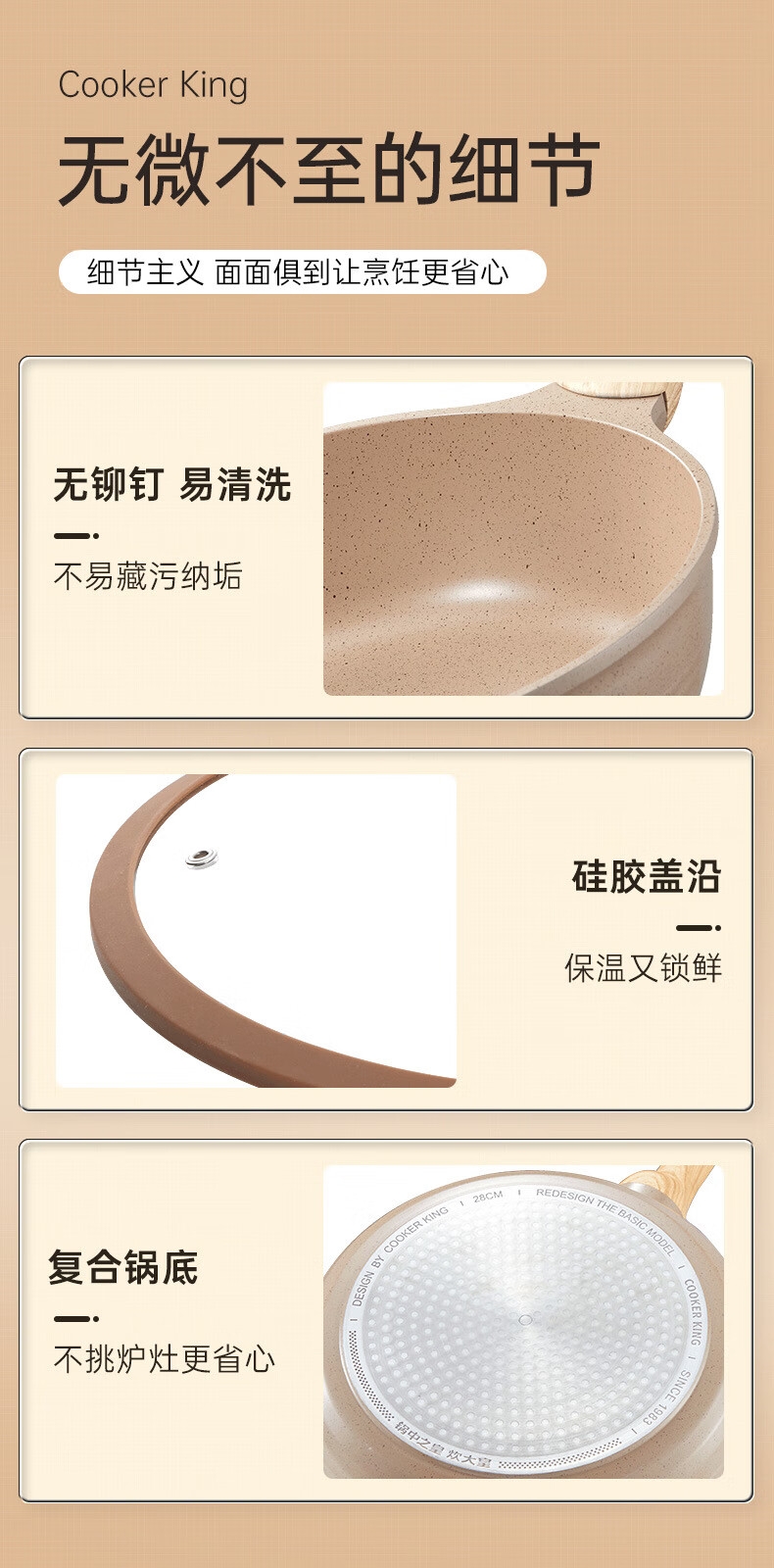 同口径相比,容量增大可煎可炒可煮,食材防飞溅