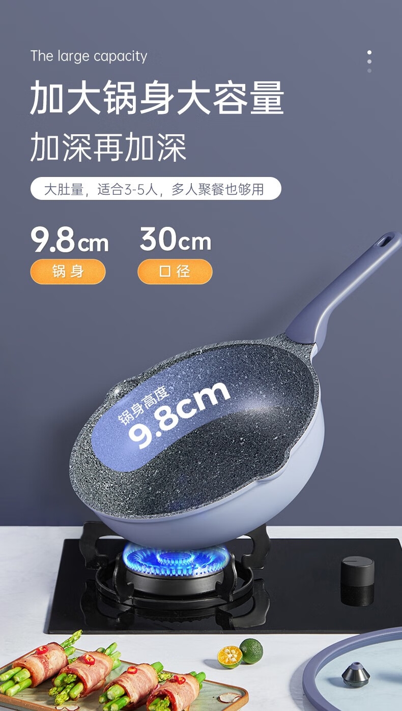 2.烹饪炒煎炖煮都不粘,匀热控油烟下厨清新更健康