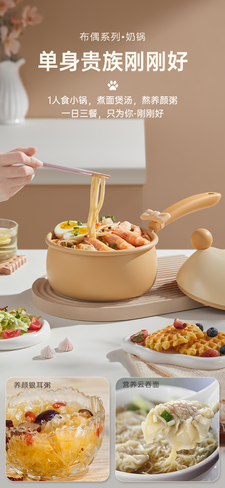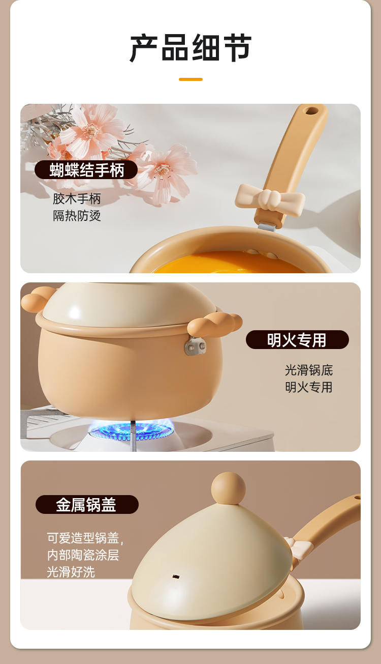 3、小口径大肚子 容量加大更实用 一锅粥,可够一家三口享用,实用好锅 口径缩小,不易溢锅