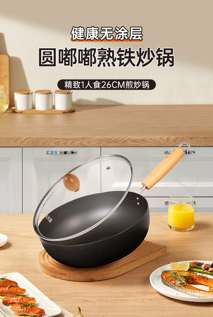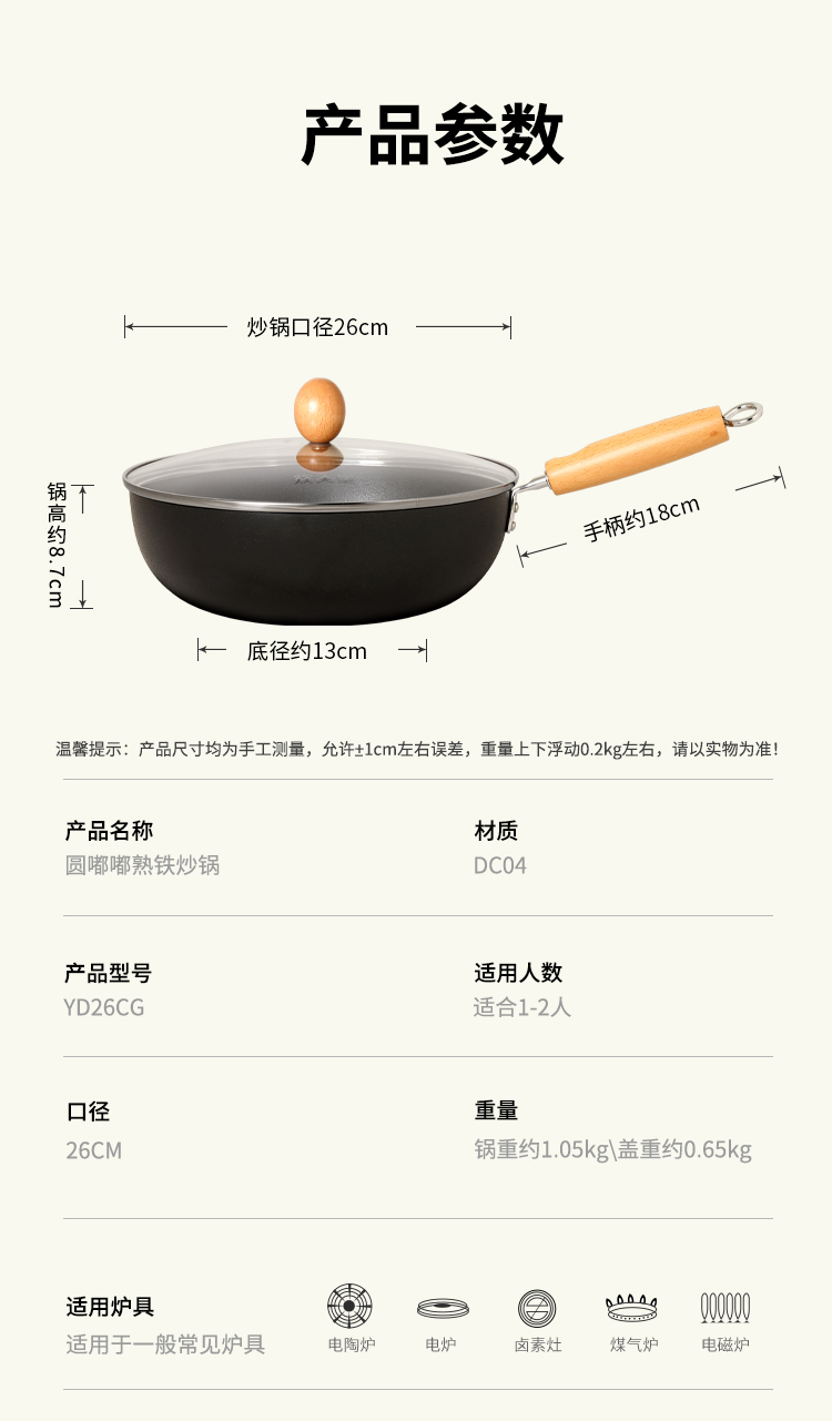 炊大皇圆嘟嘟精铁炒锅26cmYD26CG