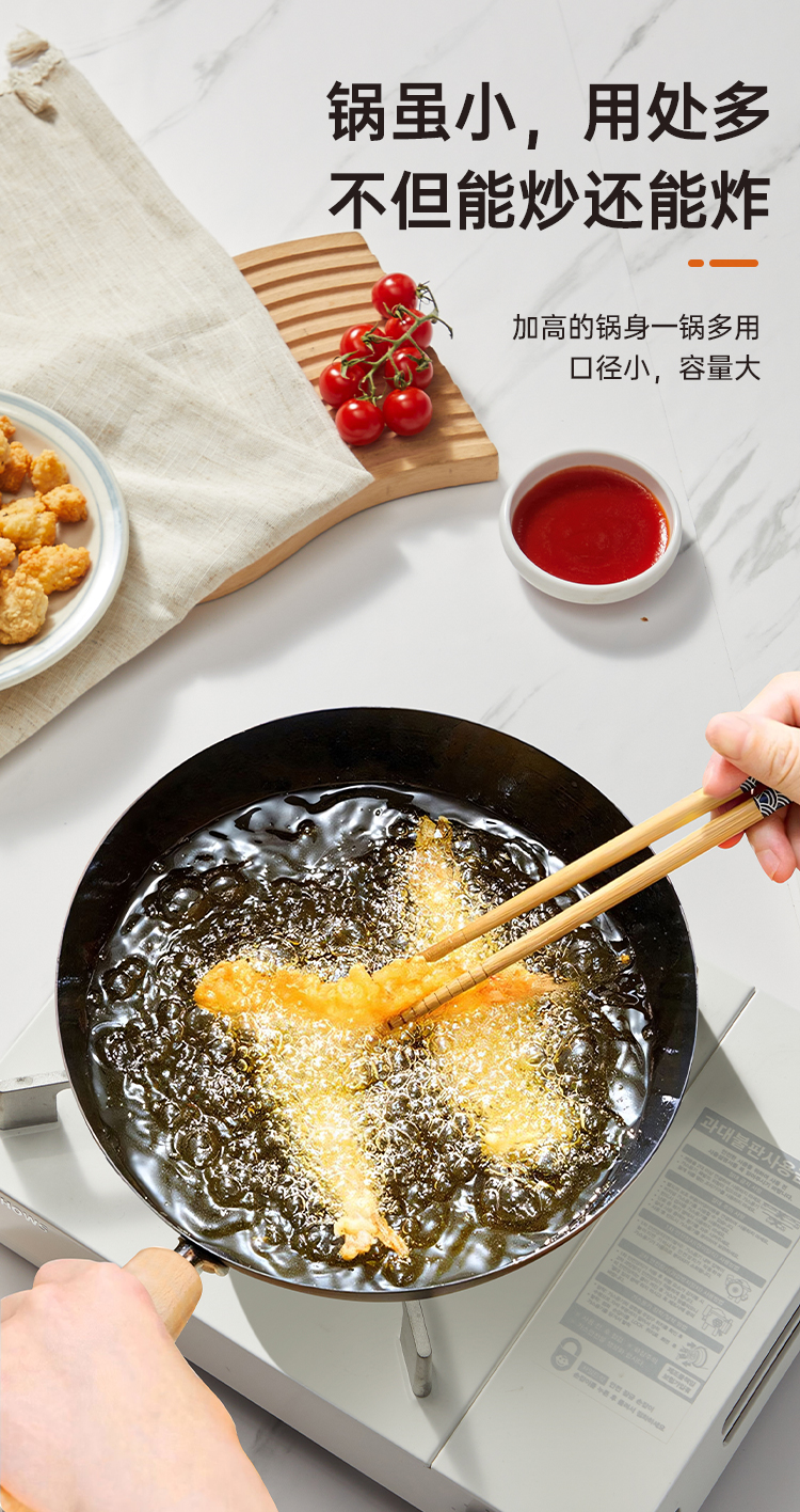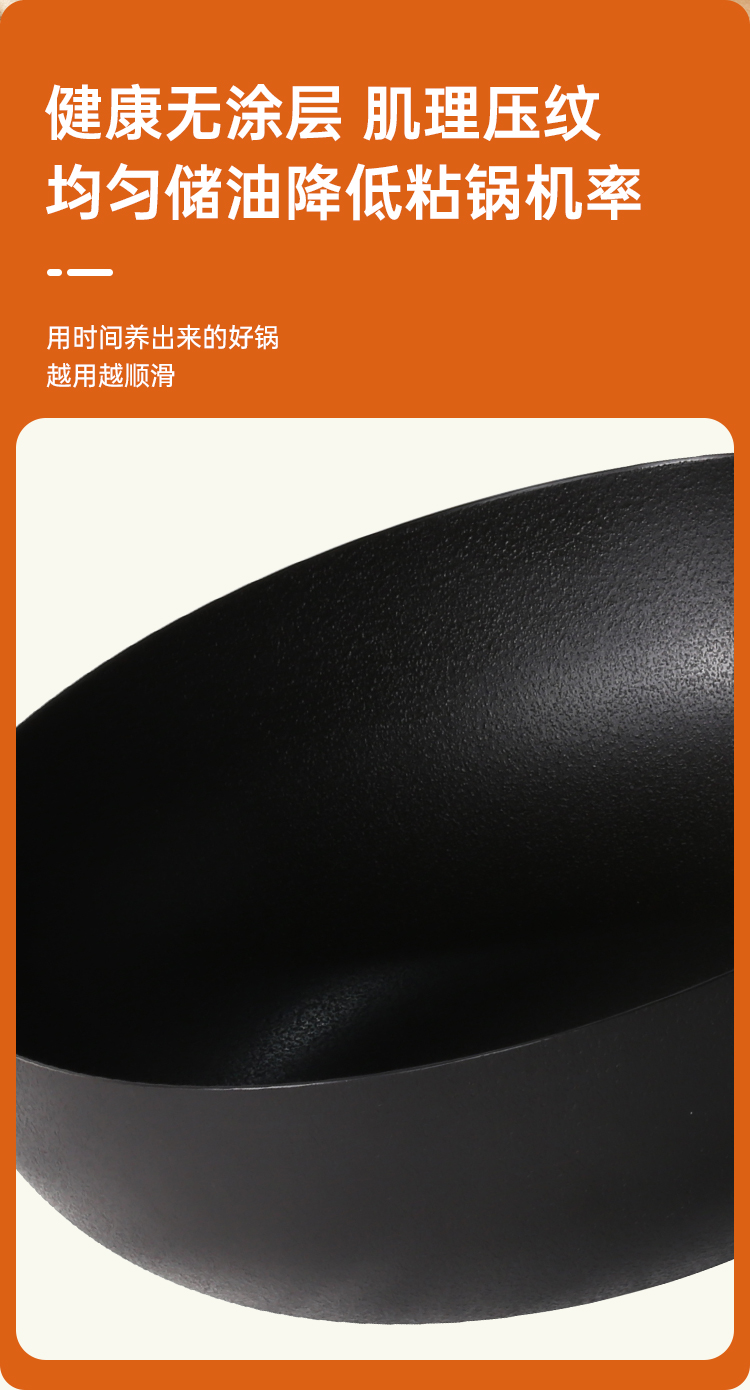 1、煎炒多用锅,不挑食材,不挑锅铲锅壁没有任何涂层,可炒贝壳类带骨头类食材也可用铁铲,钢丝球,下厨没约束。