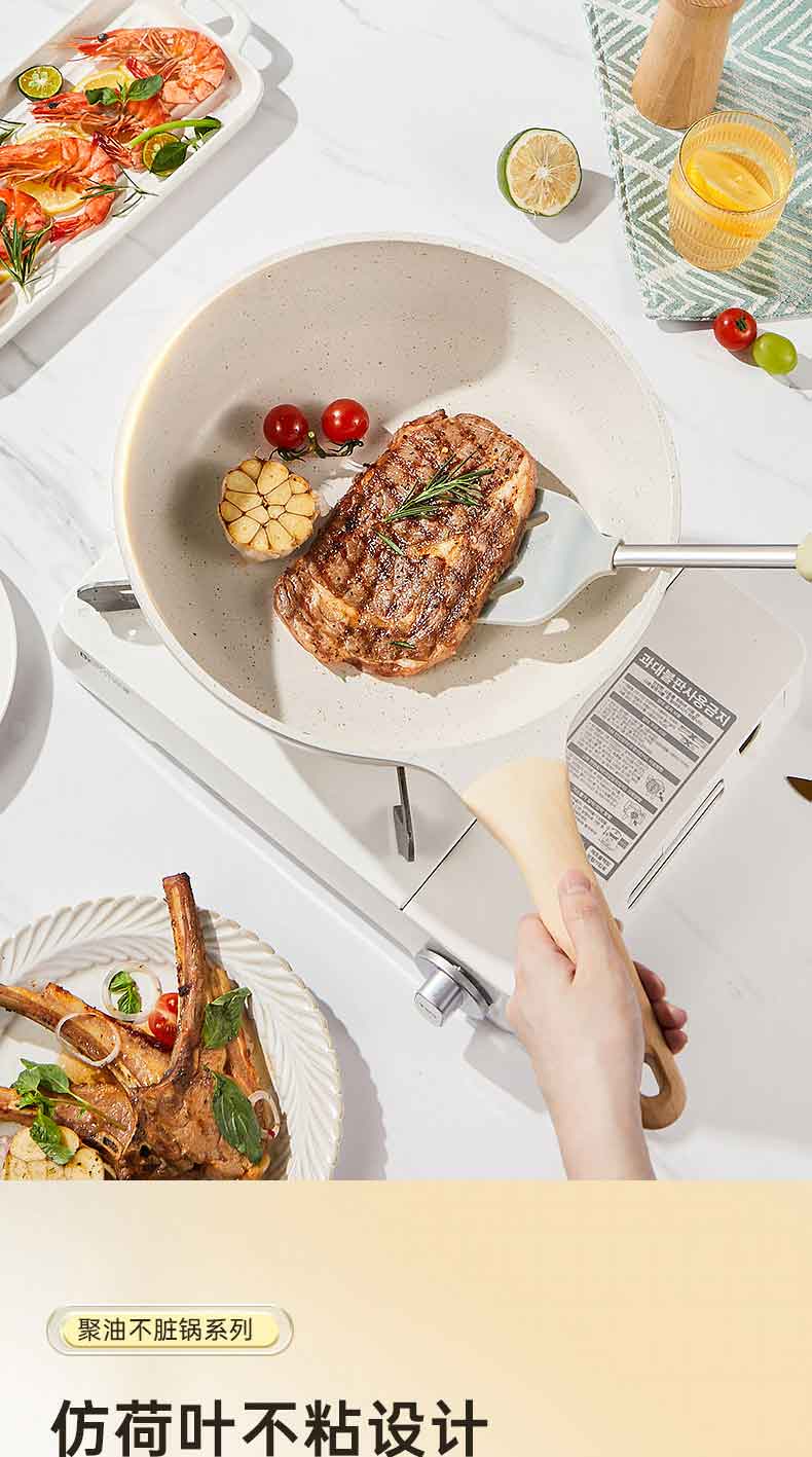1.防凸升级,倒油不散,锁油防干烧少油即可煎炒。