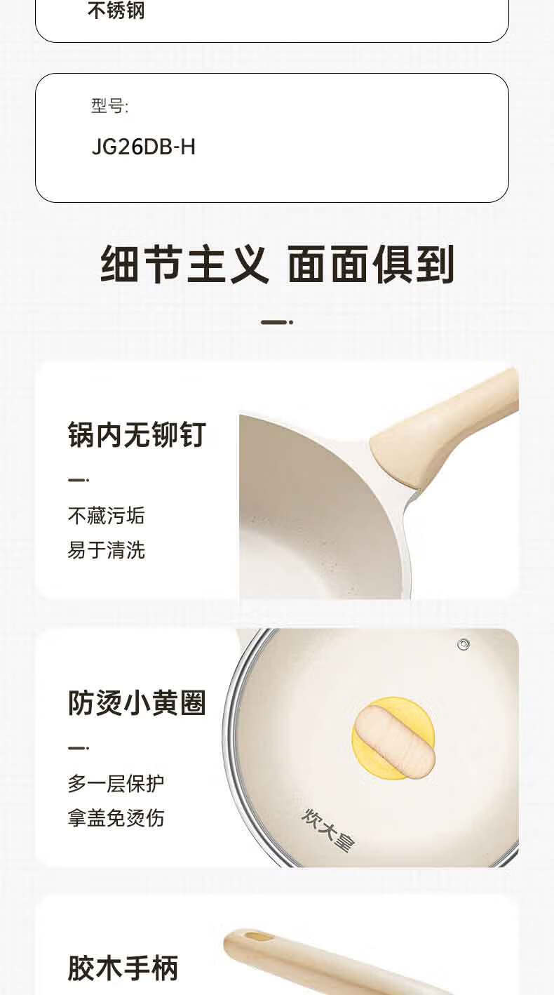 炊大皇网红大白聚油不粘深煎锅 26cmJG26DB-H