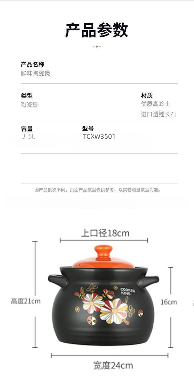 炊大皇鲜味陶瓷煲(3.5L)TCXW3501
