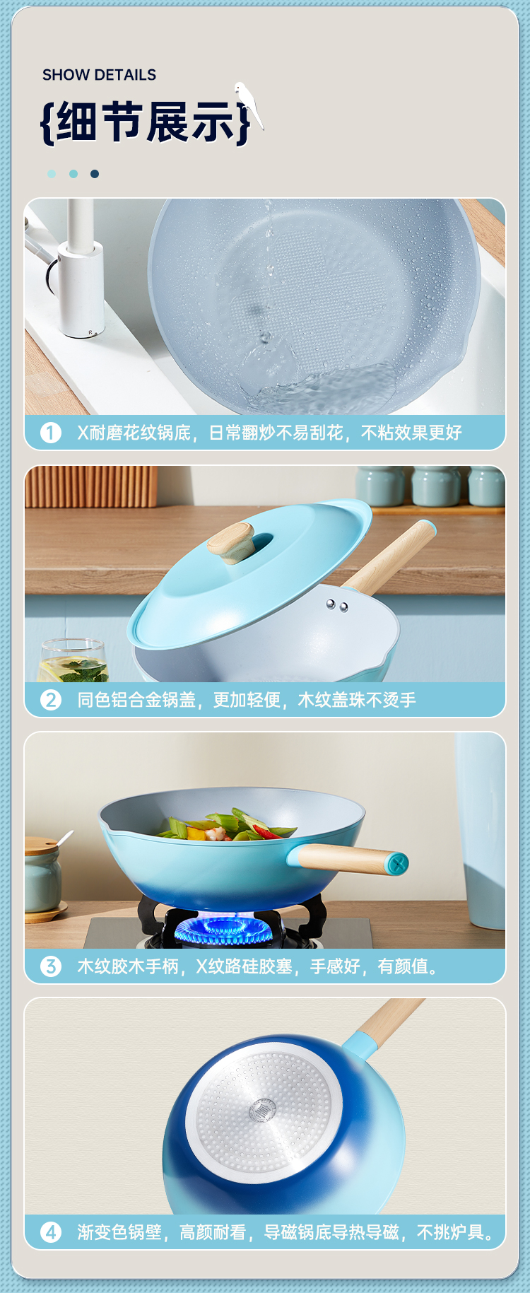 1、[油烟少}美味即刻享,厚底薄壁,匀热防焦糊,拒绝呛人油烟