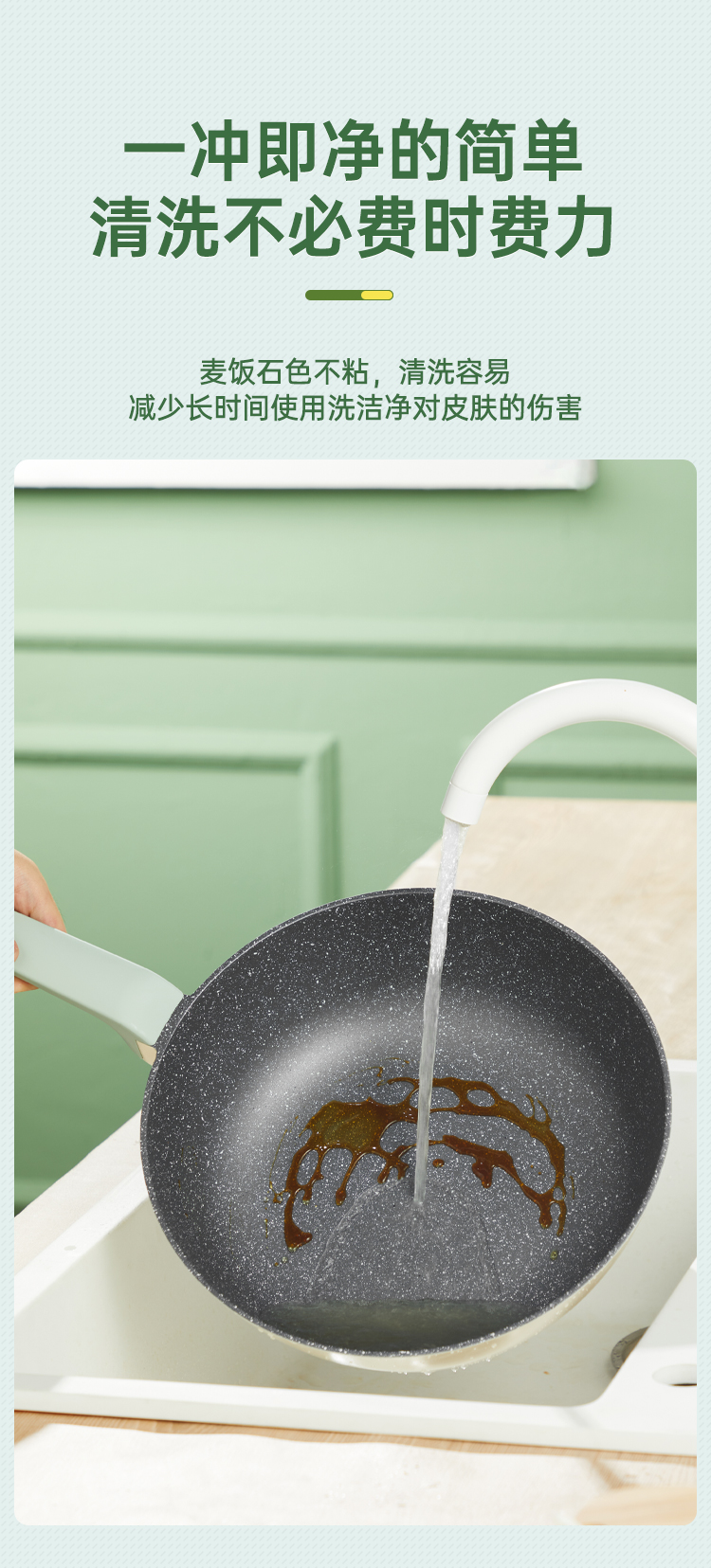 3、麦饭石色不粘,清洗容易,减少长时间使用洗洁净对皮肤的伤害。