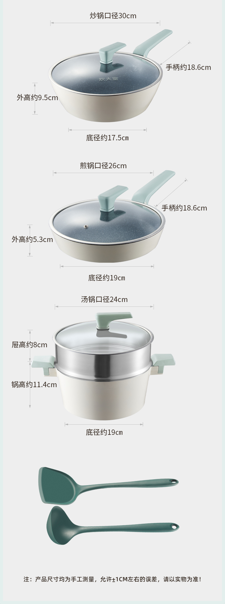 尺寸:炒锅30cm/煎锅26cm/汤锅24cm