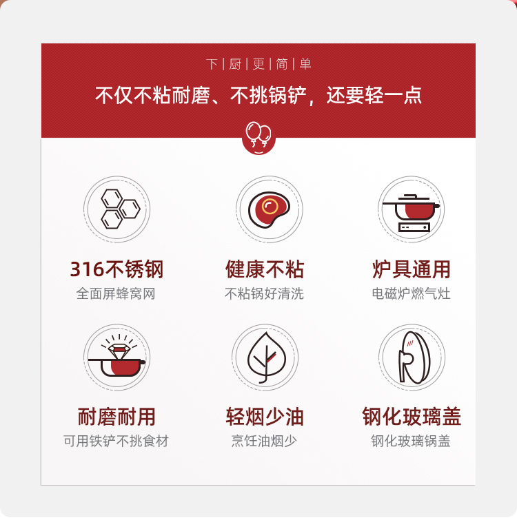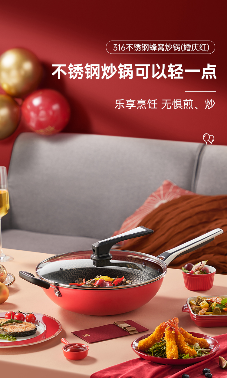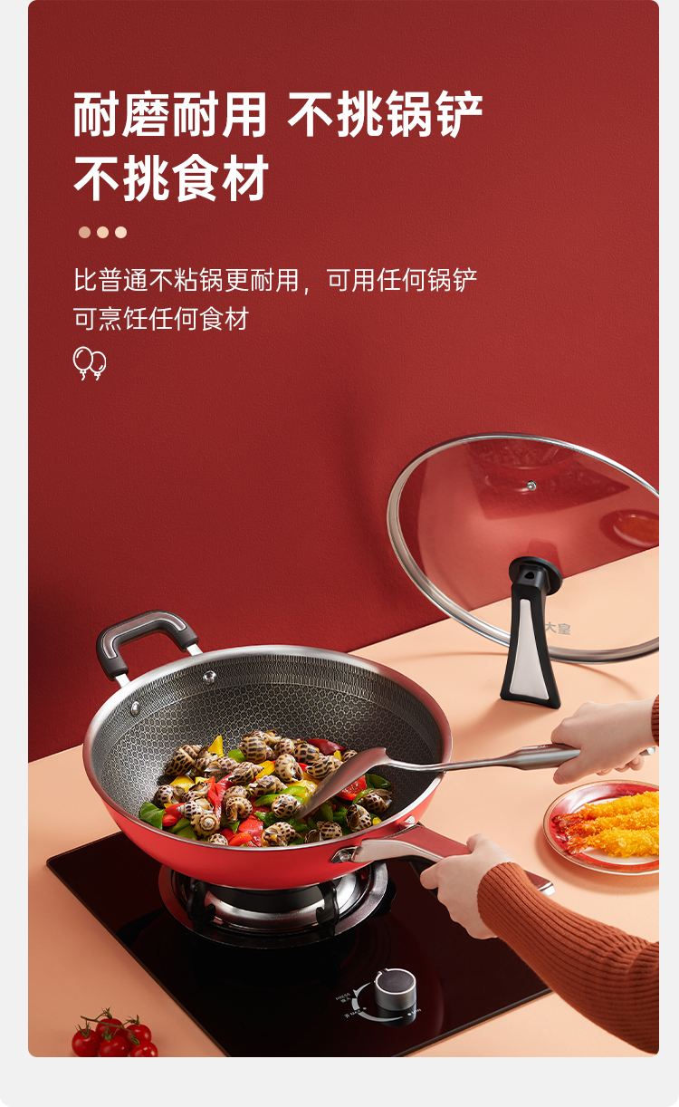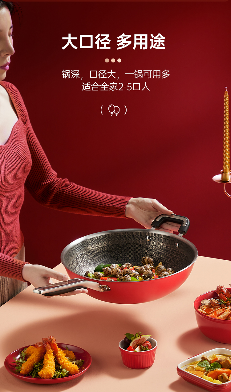 1.新升级更轻更耐用的不粘锅.喜欢不锈钢炒锅的耐磨耐用性,但是又觉得太重端不动的女性,就选这口锅