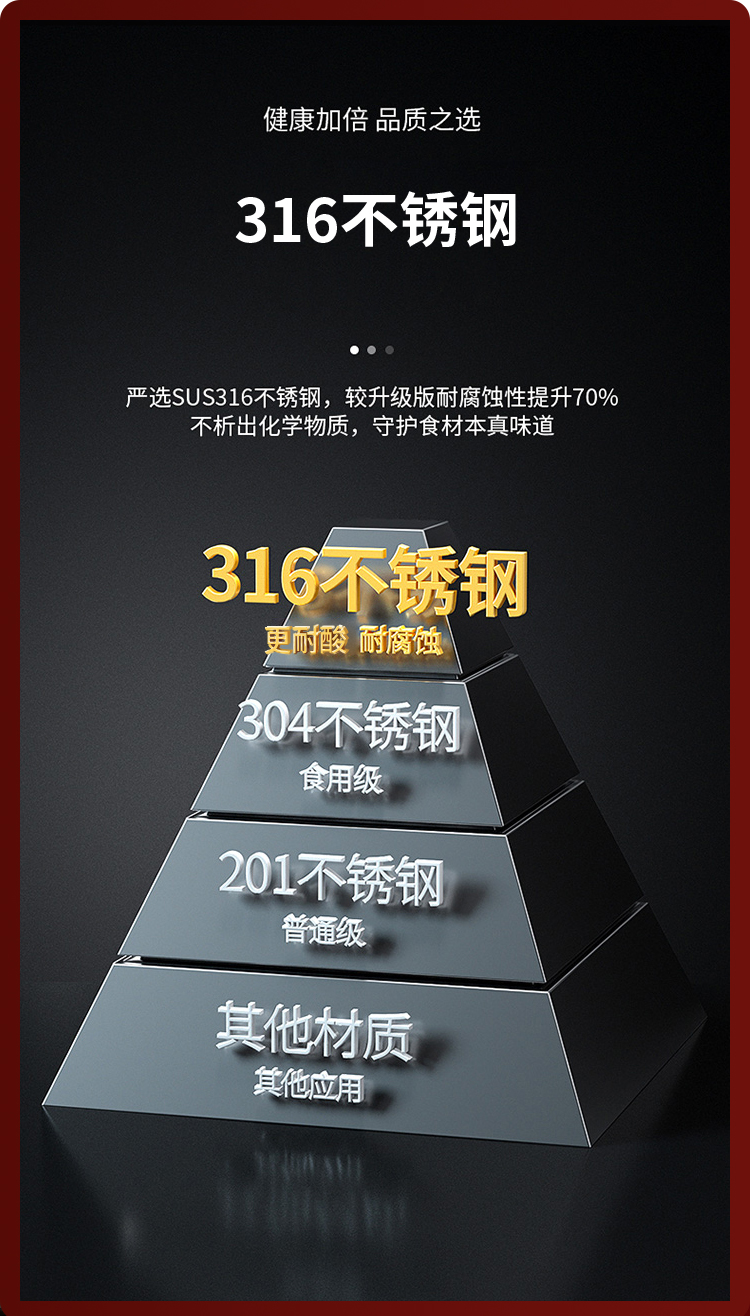 3.严选316L不锈钢,较升级版耐腐蚀性提升,不析化学物质,守护食材本身的味道
