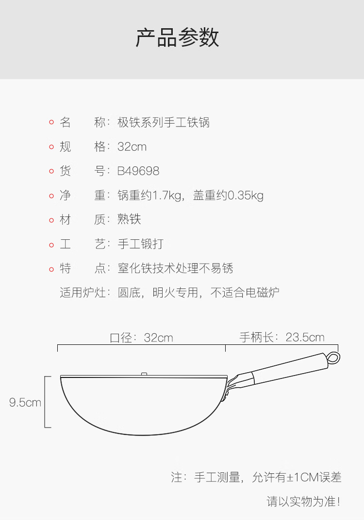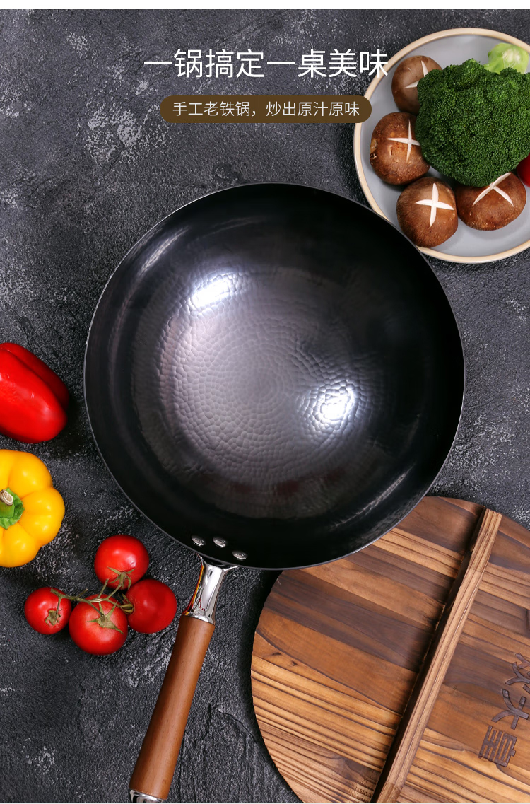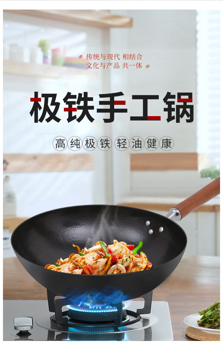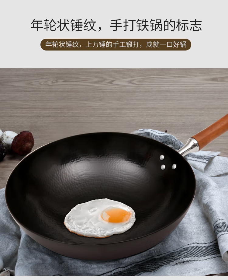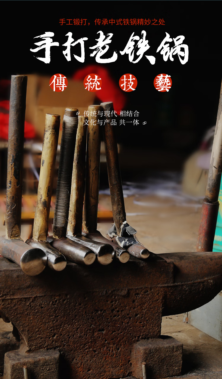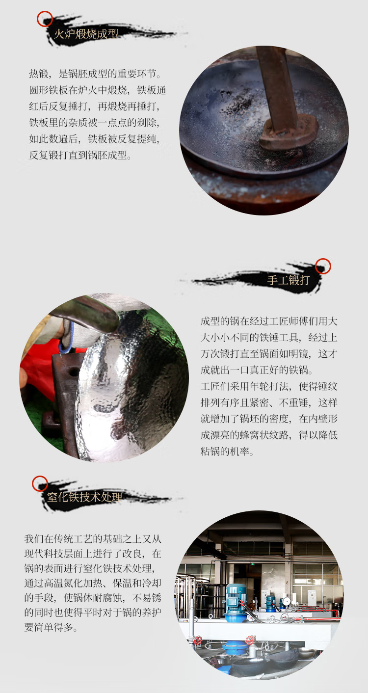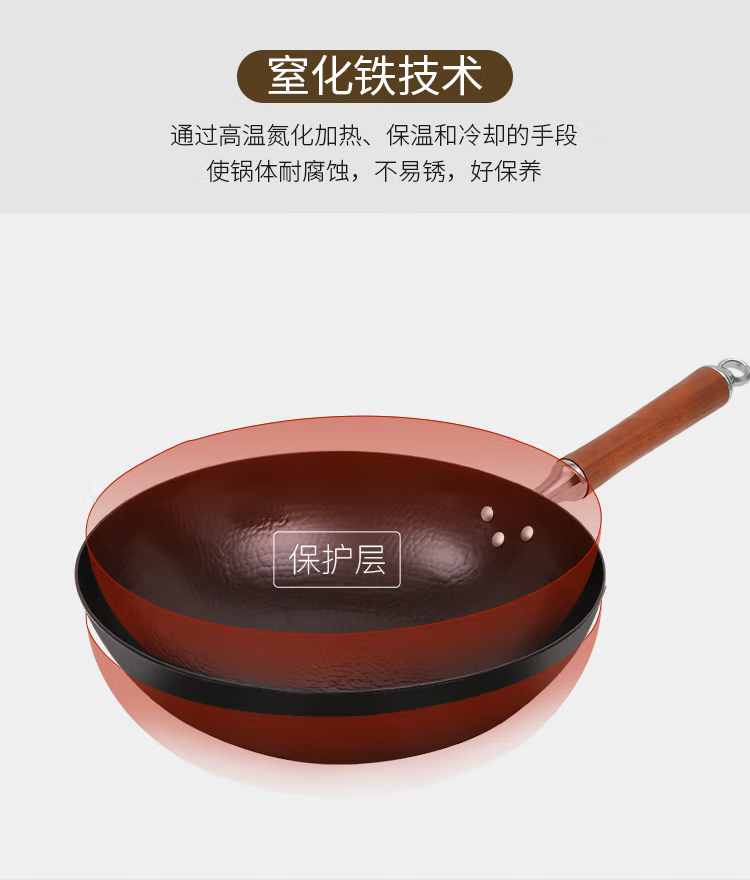 2.手工锻打,窒化铁技术处理不易锈,适用炉灶:圆底,明火专用