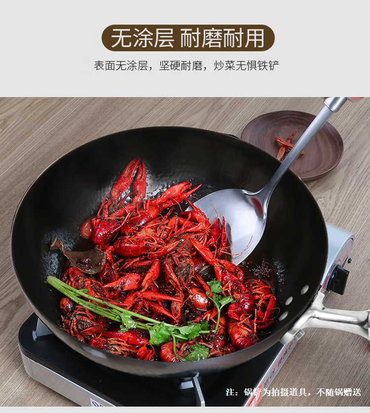 3.无涂层 耐磨耐用,表面无涂层,坚硬耐磨,炒菜无惧铁铲