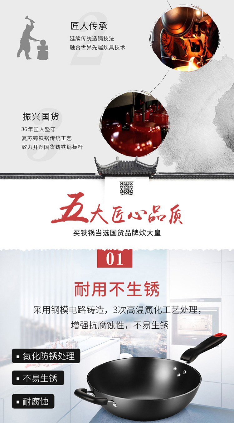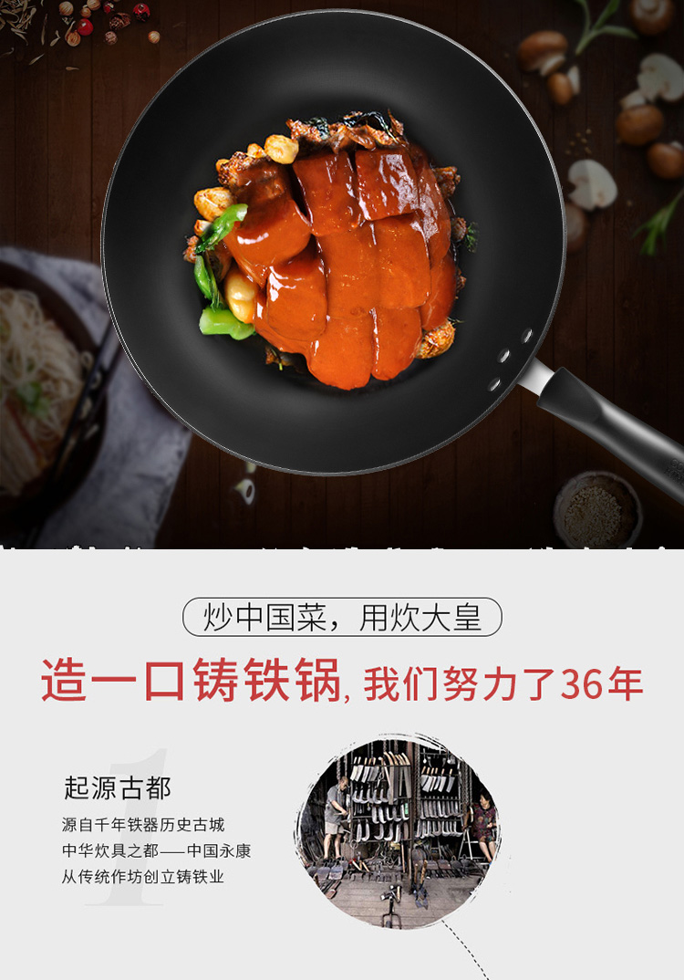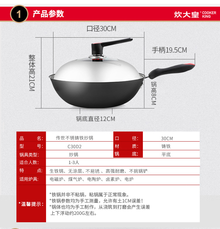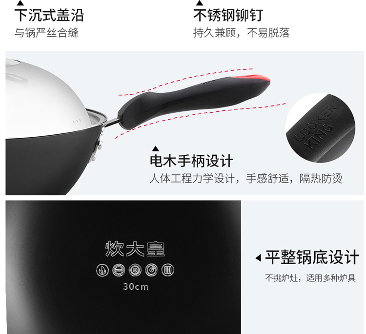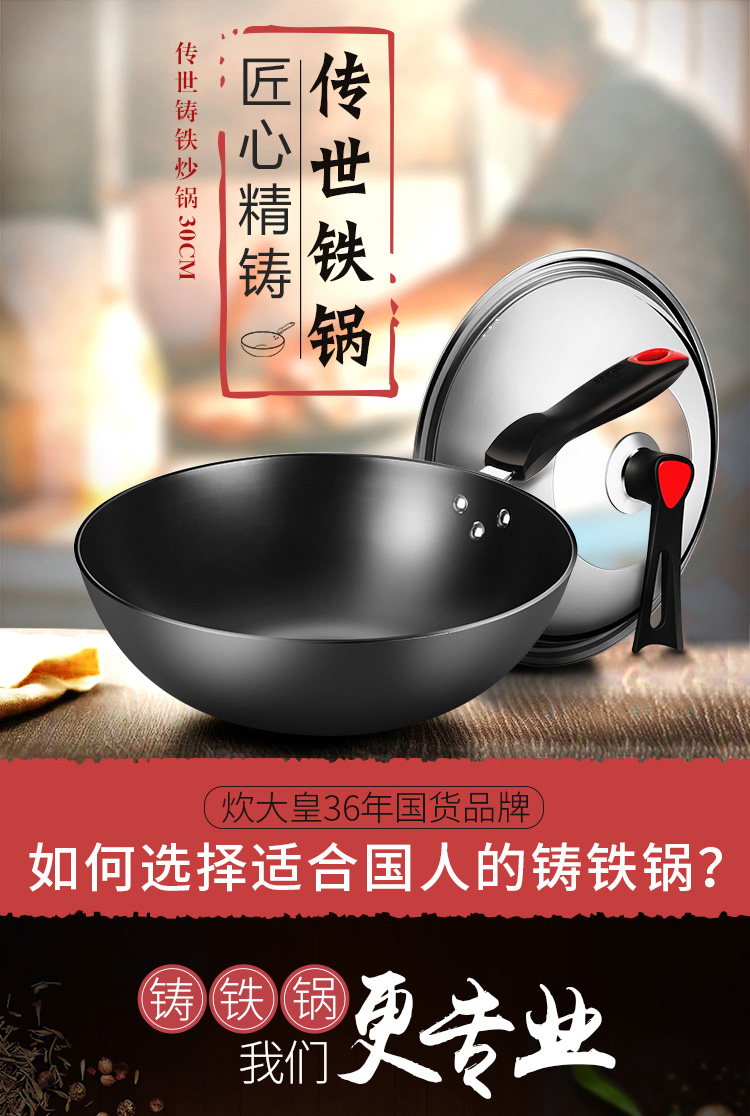 • 炊大皇传世不锈铸铁炒锅C30D2