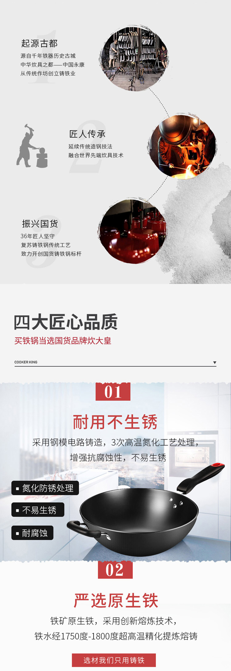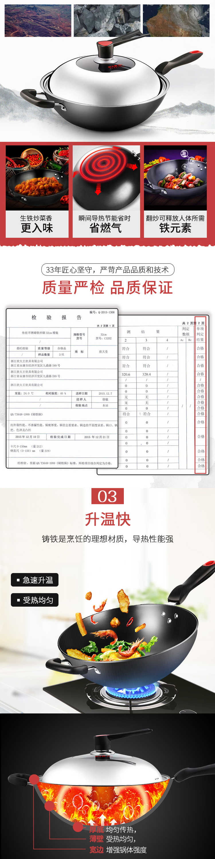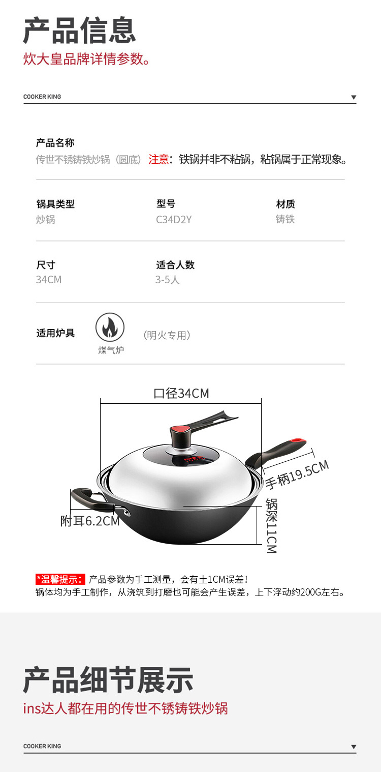 炊大皇传世不锈铸铁炒锅C34D2