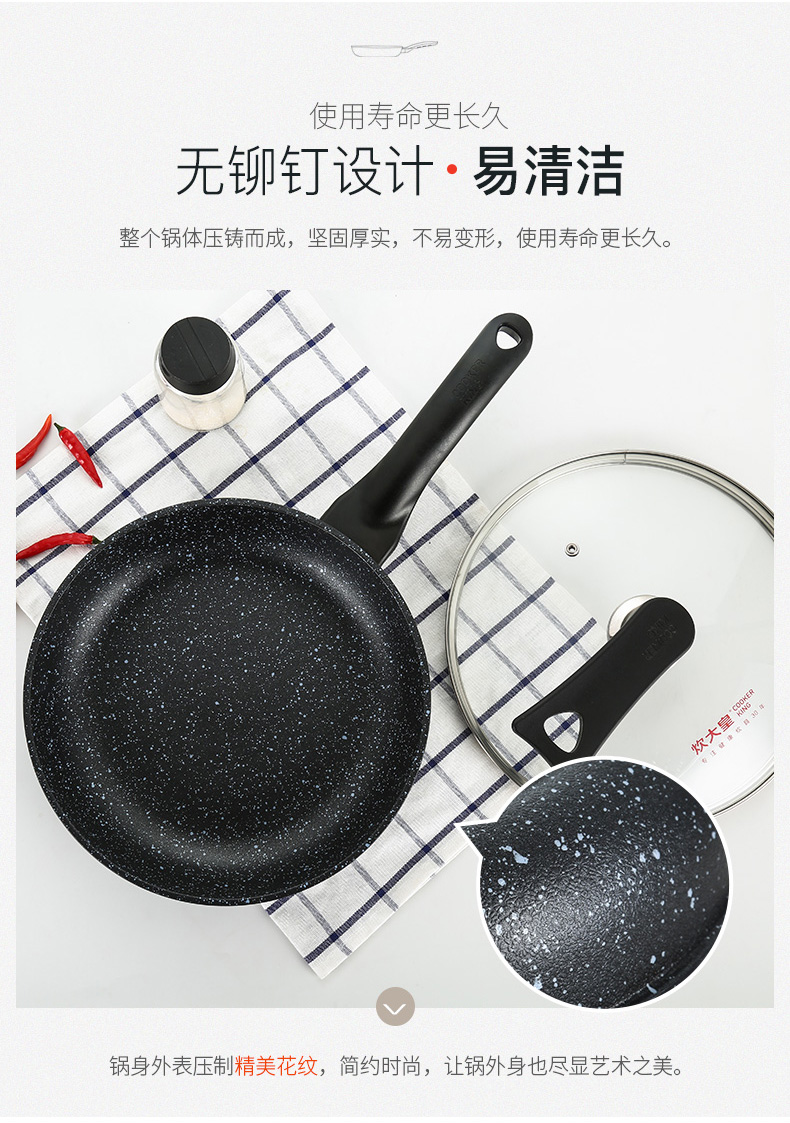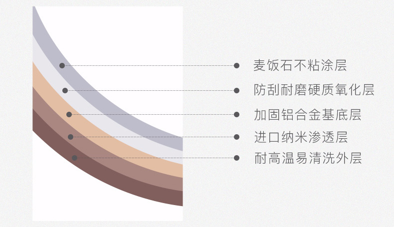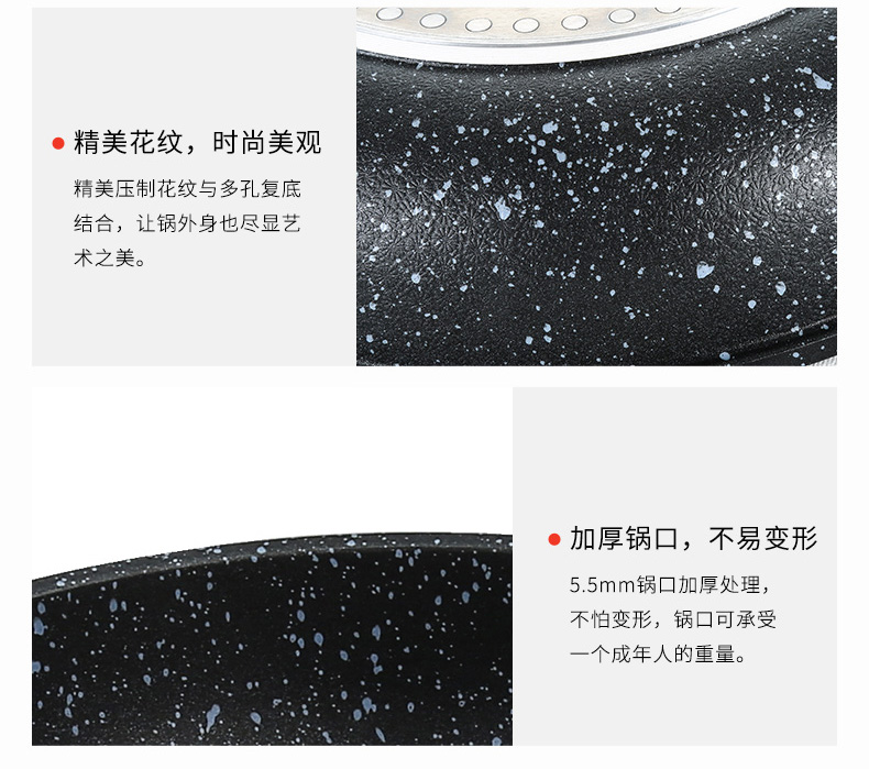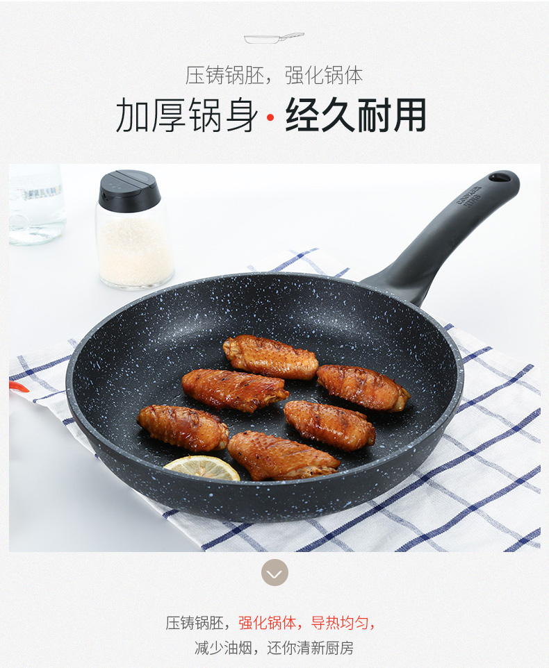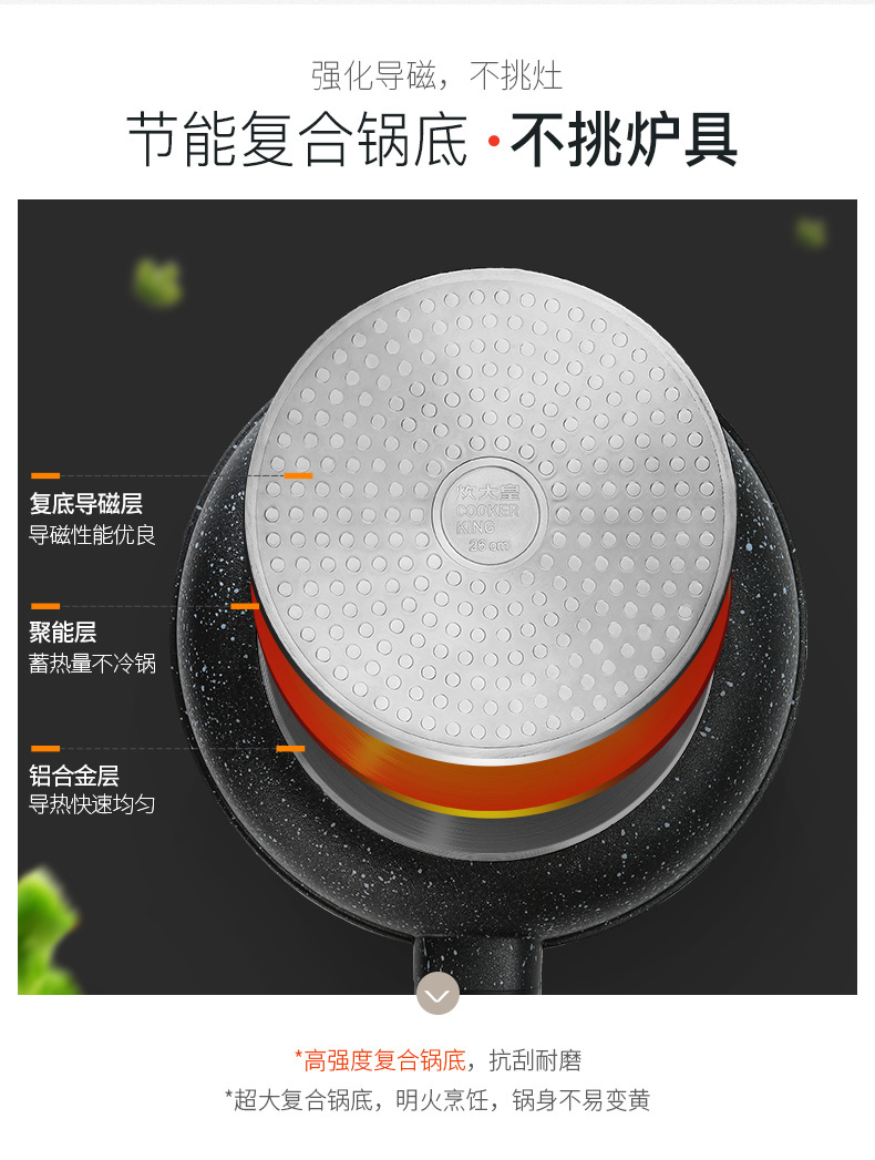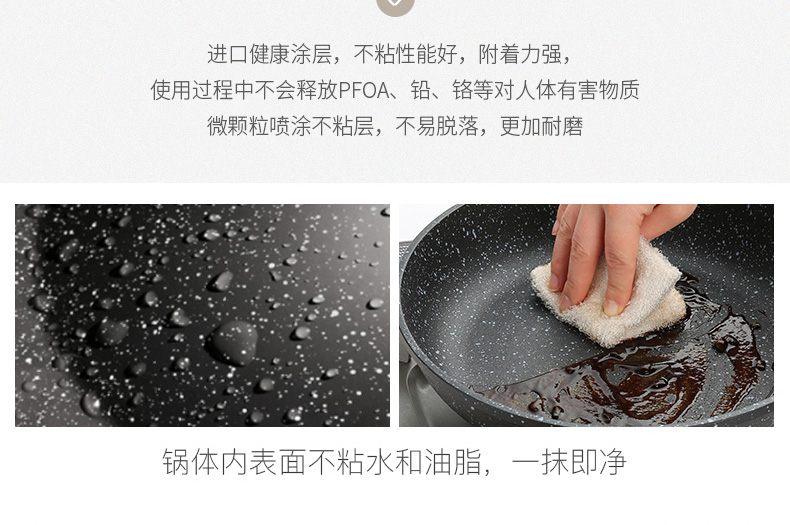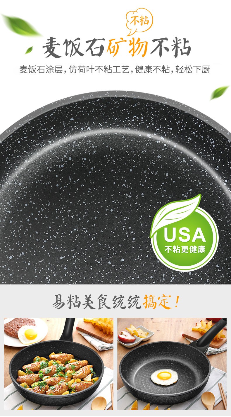 1.麦饭石色涂层,强力不粘 耐磨耐用