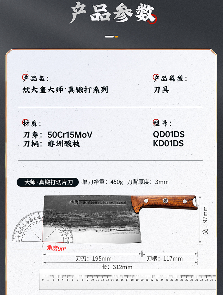 炊大皇大师·真锻打砍骨刀KD01DS