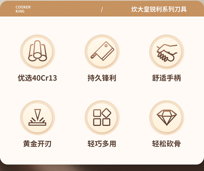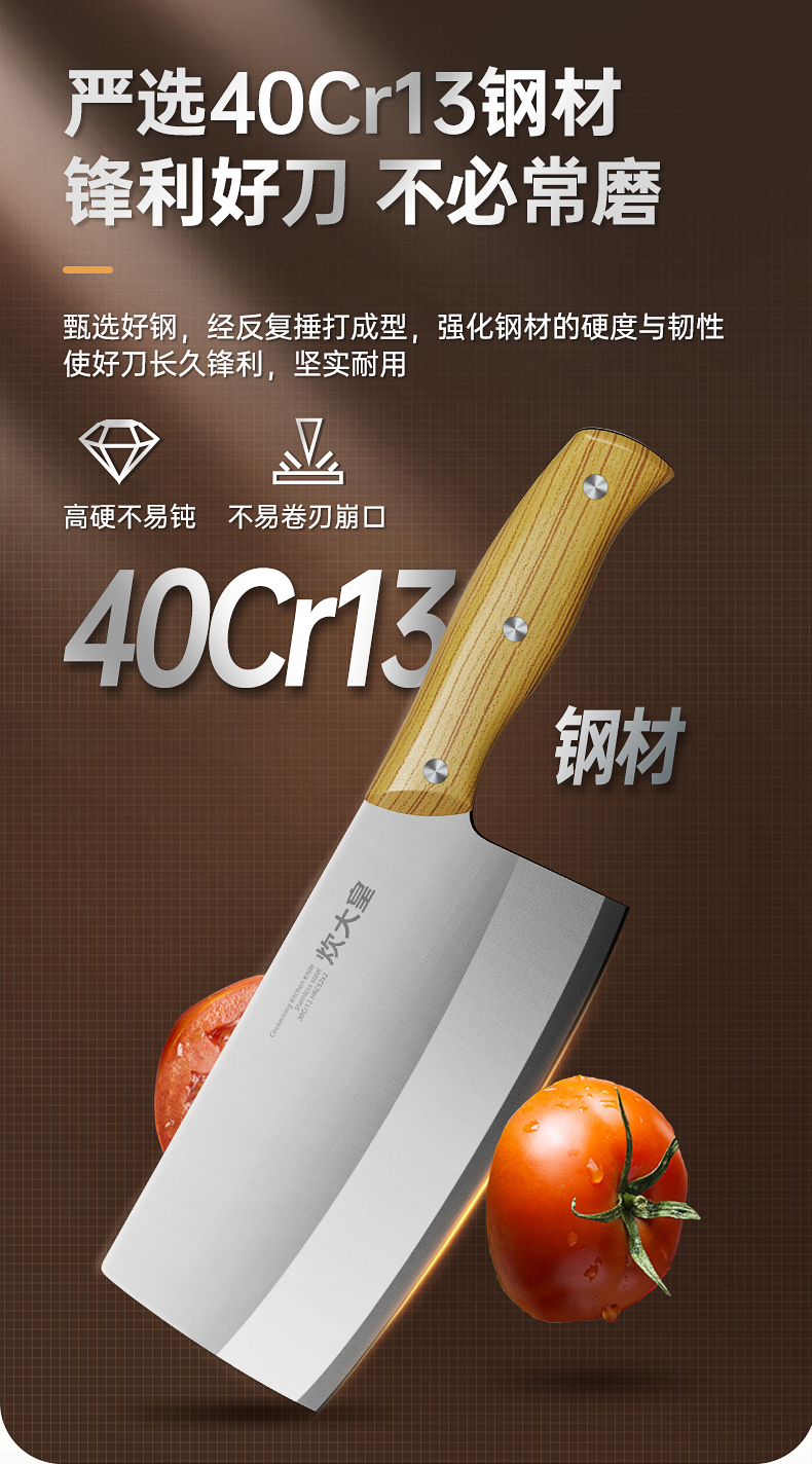 2、精湛工艺打磨,提升刀刃锋利度手起刀落,瞬间片开食材,紧锁食材汁水。