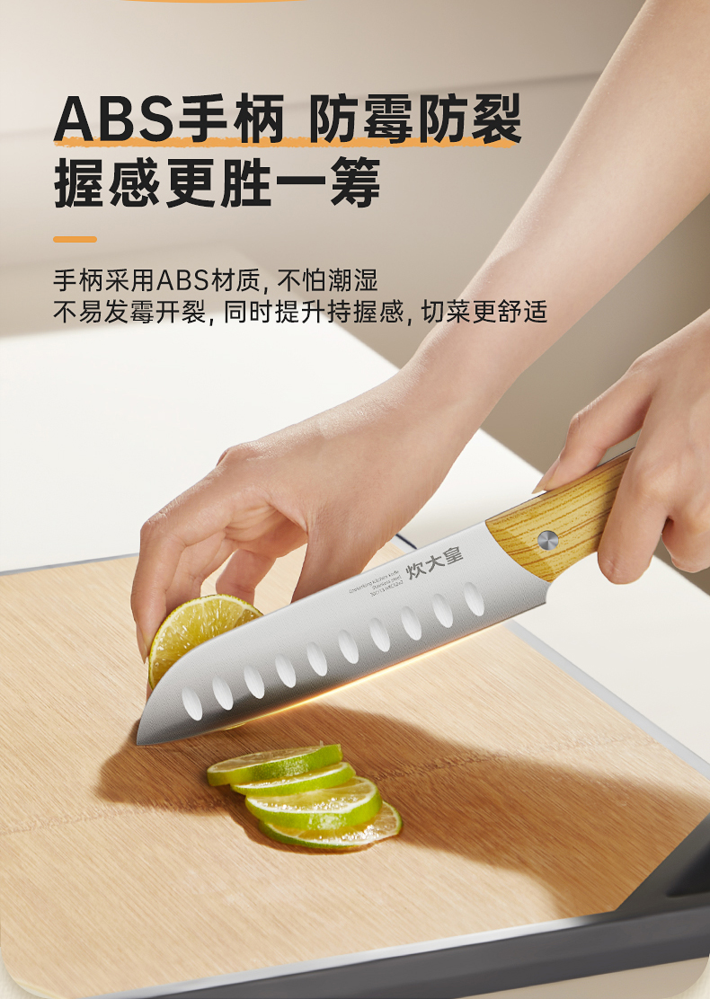 3、手柄采用ABS材质,不怕潮湿不易发霉开裂,同时提升持握感,切菜更舒适.