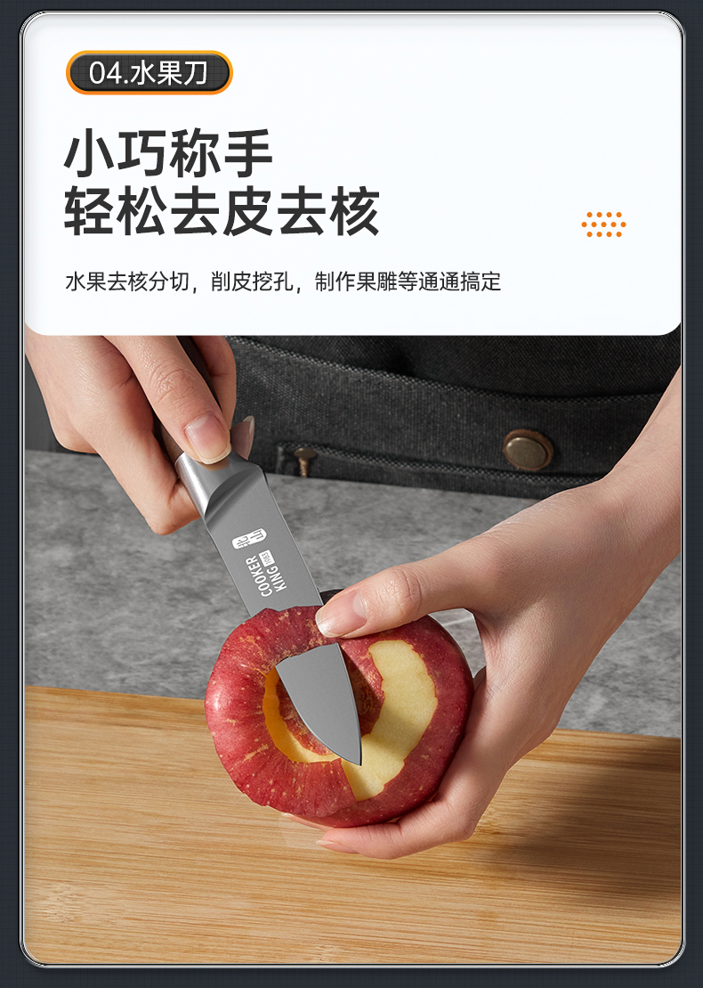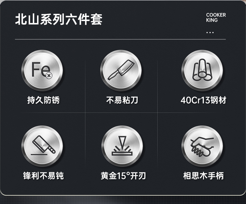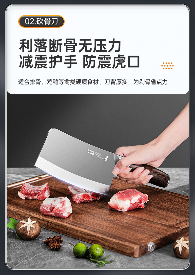 3、锋利不易钝源于40Cr13好钢材,手工湿式水磨开刃,刃口锋利升级让切配比你想象的更畅快。
