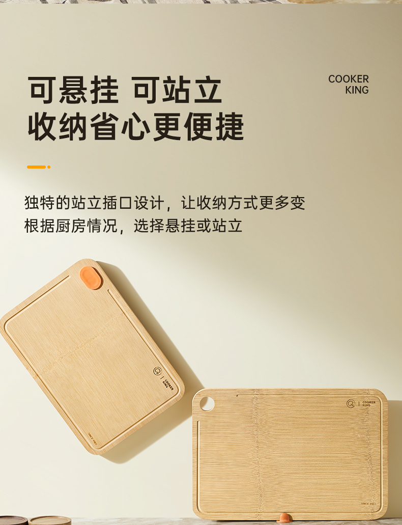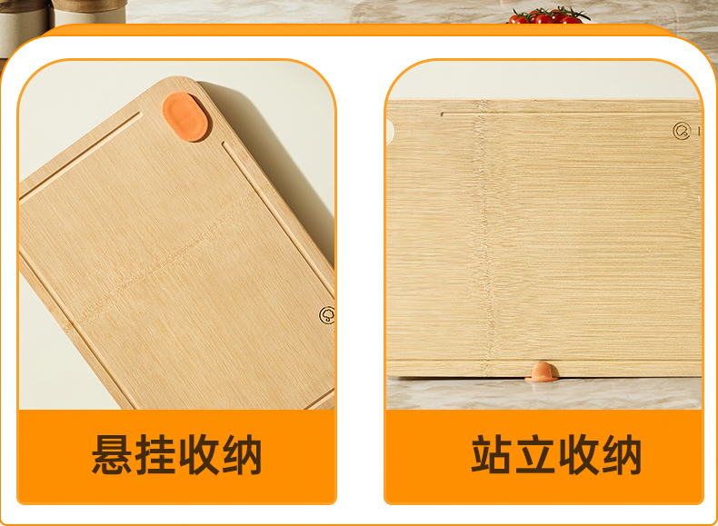 3、独特的站立插口设计,让收纳方式更多变根据厨房情况,选择悬挂或站立,历经严苛工艺,使菜板不易发霉开裂。