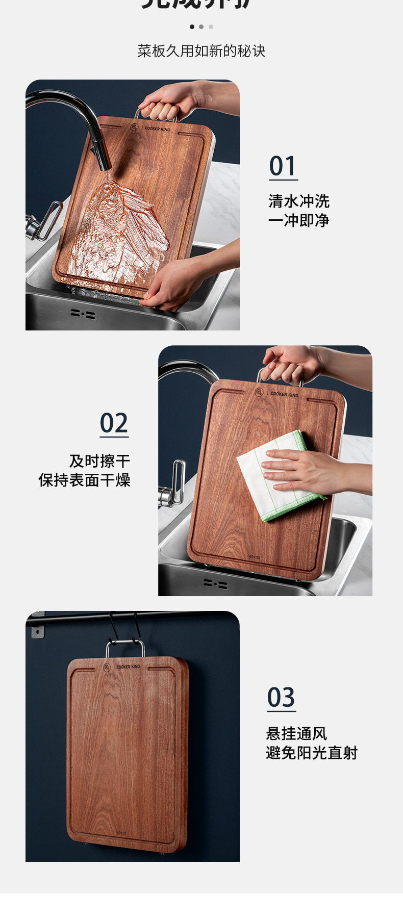 3、3cm加厚实木不震手 不伤刀 不易裂