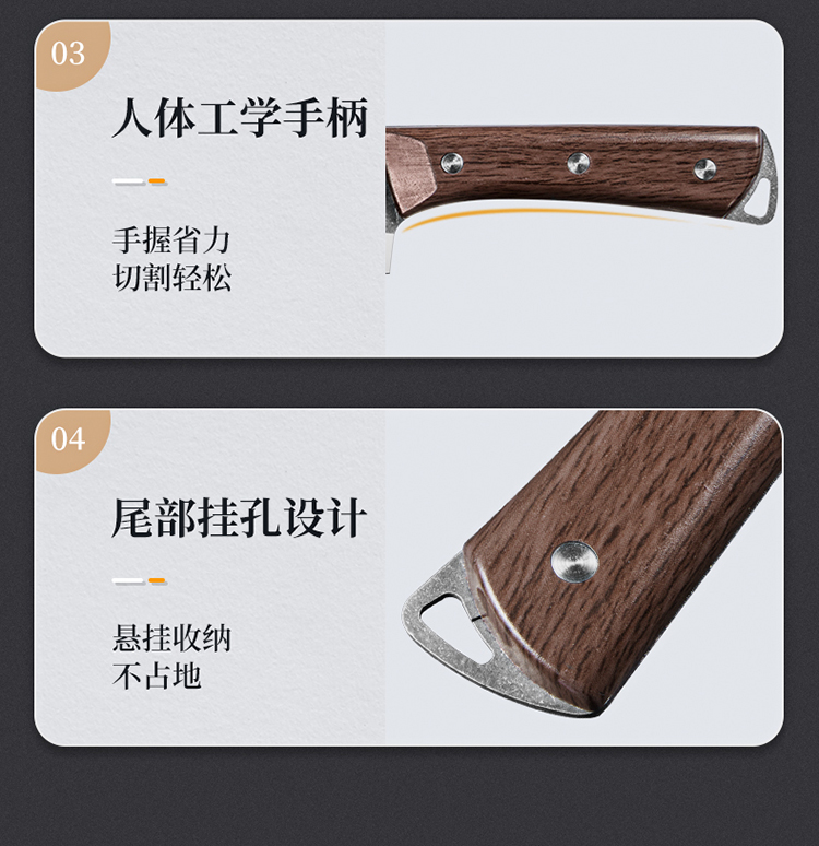 2、蛤刃在削切和斩砍过程中接触面小,受到的阻力也更小,所以使用更省力。