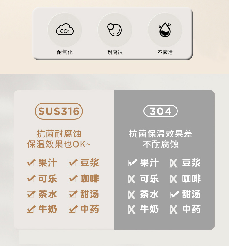 内胆316不锈钢材质,耐腐蚀耐氧化更安全。