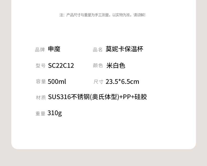 材质:杯体:SUS316 奥氏体型不锈钢(食品接触用)