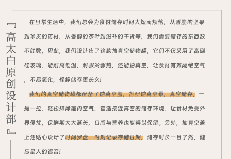 高太白真保鲜 · 抽真空储物罐小号500ml两件套 GBXG001