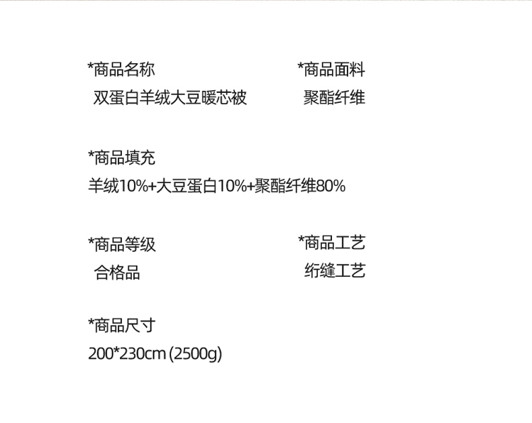 雅鹿双蛋白羊绒大豆暖芯被YLB2405(200*230cm)