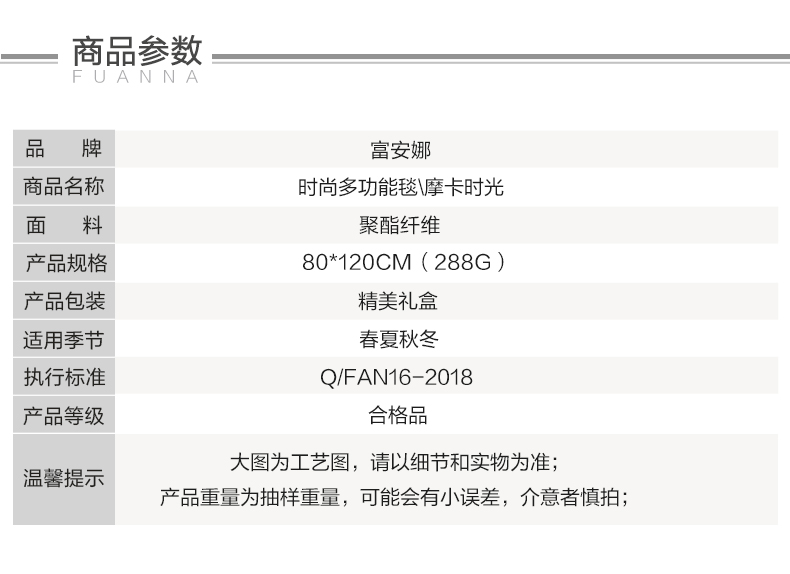 富安娜 时尚多功能毯\摩卡时光\80*120cm\288g