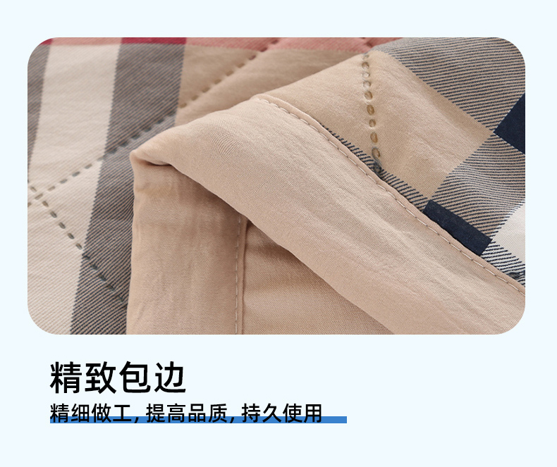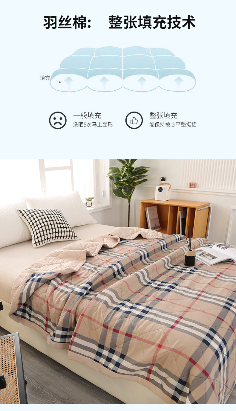 创新的超声波工艺,无针孔、无粘合剂,使得被子更加轻盈柔软,且不会对人体产生任何刺激,是夏夜中的完美选择。独特的材质和工艺,让被子拥有超强的透气性,有效散热,保持床铺干爽,即使是闷热的夜晚也能睡得舒适。这款被子不仅使用方便,而且清洗起来也非常简单。快速干燥的特性,让你无需长时间等待,就能再次享受到它的清爽。告别传统厚重的夏被,拥抱超声波夏被的轻盈与舒适吧!它将成为你夏日里不可或缺的好伴侣,让你每个晚上都能拥有甜美的梦境。快来体验它带来的清新感受,享受一个凉爽的夏天!