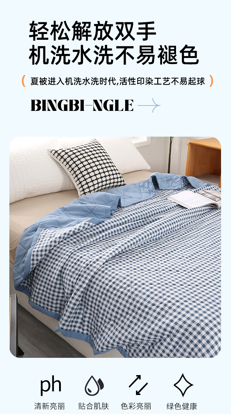 创新的超声波工艺,无针孔、无粘合剂,使得被子更加轻盈柔软,且不会对人体产生任何刺激,是夏夜中的完美选择。独特的材质和工艺,让被子拥有超强的透气性,有效散热,保持床铺干爽,即使是闷热的夜晚也能睡得舒适。这款被子不仅使用方便,而且清洗起来也非常简单。快速干燥的特性,让你无需长时间等待,就能再次享受到它的清爽。告别传统厚重的夏被,拥抱超声波夏被的轻盈与舒适吧!它将成为你夏日里不可或缺的好伴侣,让你每个晚上都能拥有甜美的梦境。快来体验它带来的清新感受,享受一个凉爽的夏天!