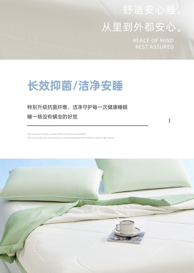 从材质到工艺,从健康到舒适,这款夏被以科技赋能睡眠,让您每晚在清新洁净中安然入梦,尽享整夏清凉