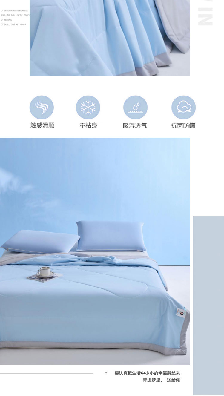 从材质到工艺,从健康到舒适,这款夏被以科技赋能睡眠,让您每晚在清新洁净中安然入梦,尽享整夏清凉