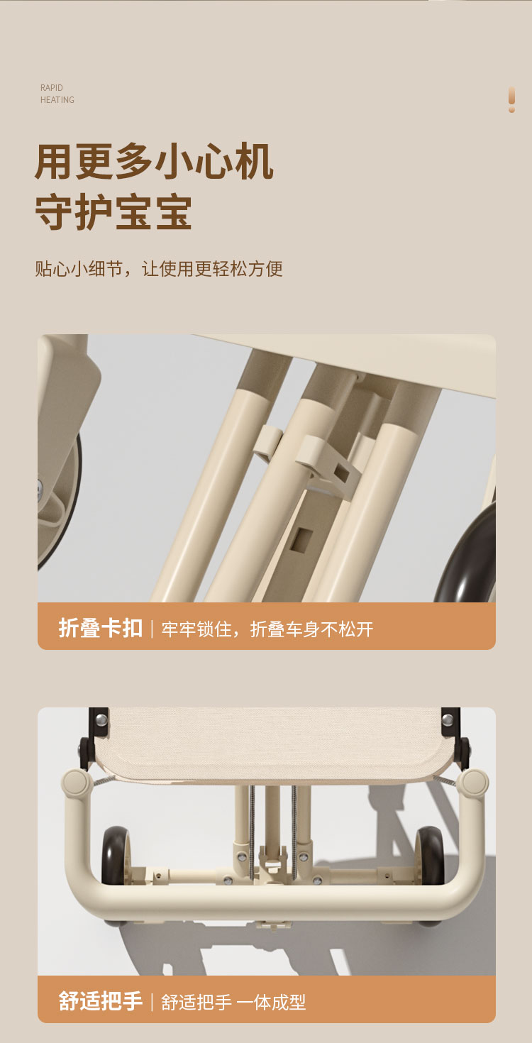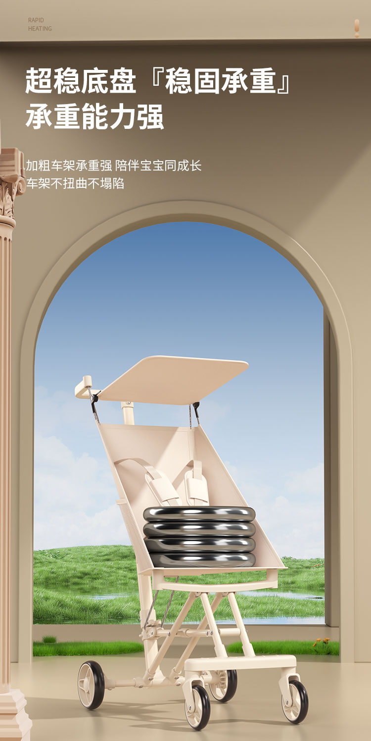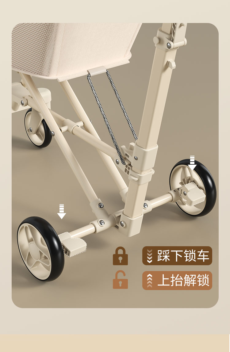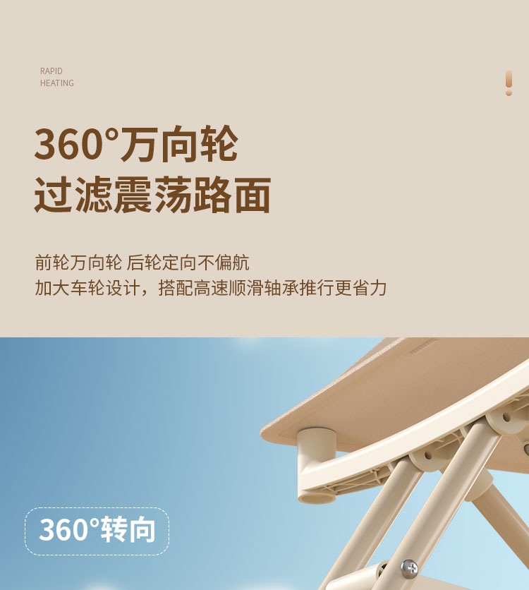 1、加粗加厚碳钢管材,稳固支撑高承重。2、静音EVA轮胎,静音 防滑 耐磨。3、一件折叠设计,外出方便携带,新升级一拉一提即可折叠4,避震万向静音轮推行轻便丝滑,
