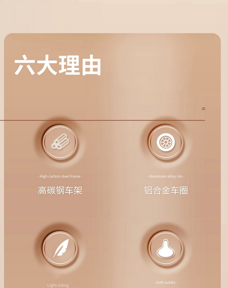 车身采用高碳钢车架,稳固安全;加宽发泡实心轮胎 ,减震防滑,适应各种路况路面;三角结构,稳固防止侧翻;2挡可调节座椅,适应宝宝不同年龄段使用;磨砂圆润把手,防撞车头,安全升级;人体工学设计座椅,骑乘舒适。