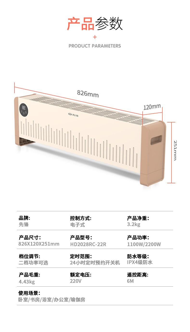 先锋踢脚线HD2028RC-22R(DF2028R)(电子触屏+遥控 )