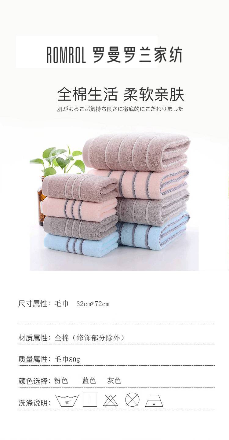罗曼罗兰舒适全棉毛巾32*72cm/80g