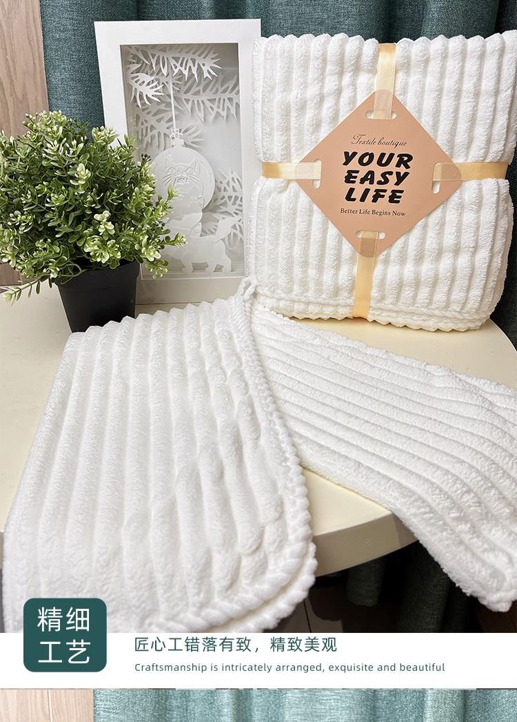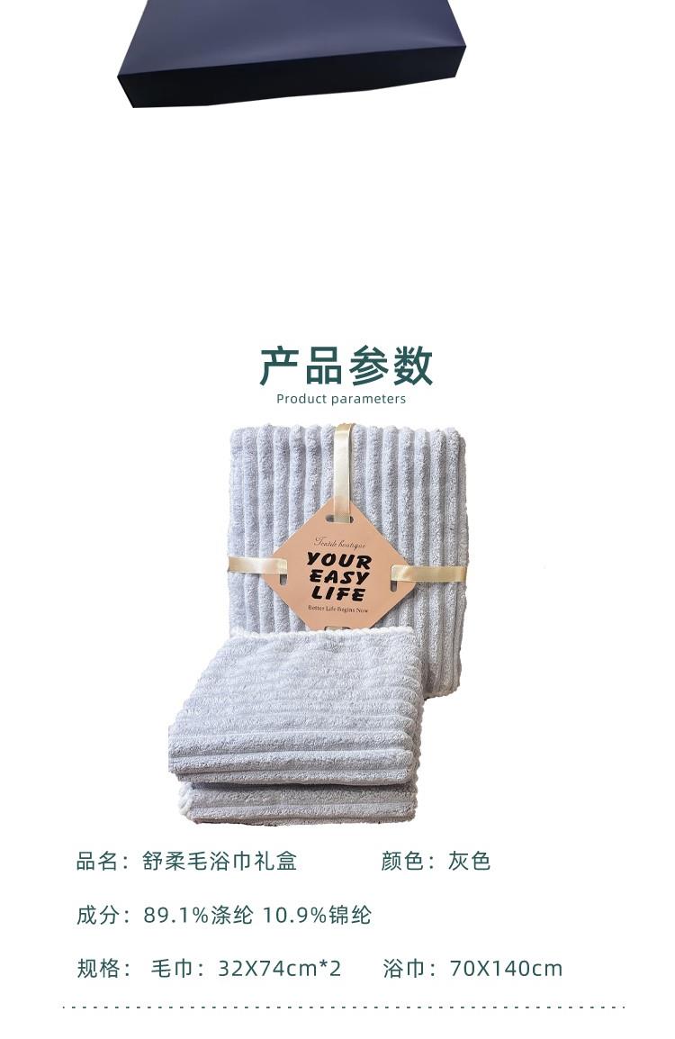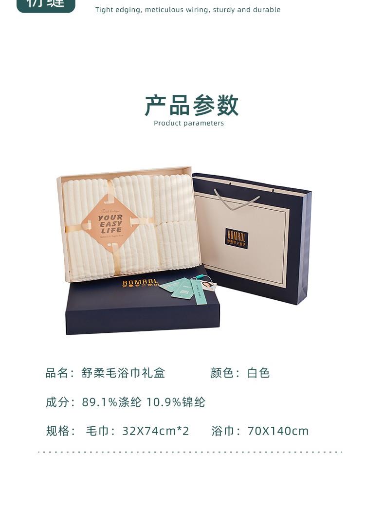 采用高品质的珊瑚绒面料,这种面料具有微细纤维结构,能够提供无与伦比的舒适感。它仿佛自然界的细腻触抚,与肌肤的亲密接触如同被温暖的云朵轻柔包裹。具有良好的透气性,能有效避免细菌滋生,长久维持毛巾的蓬松与清新,为您的健康生活保驾护航毛浴巾礼盒的设计注重细节,如边缘的精细锁边工艺,增强了产品的耐用度,有效防止脱线,体现了匠心独运