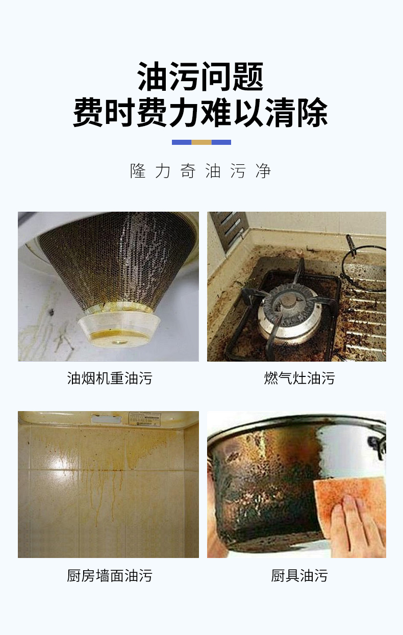 免拆洗:本品能有效渗透分解顽固油垢,无须拆卸油烟机。