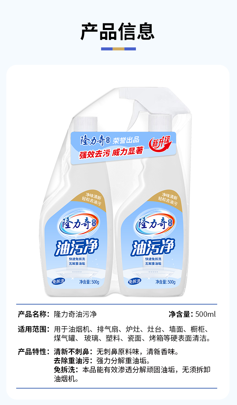 名称:隆力奇油污净组合装500g*2瓶