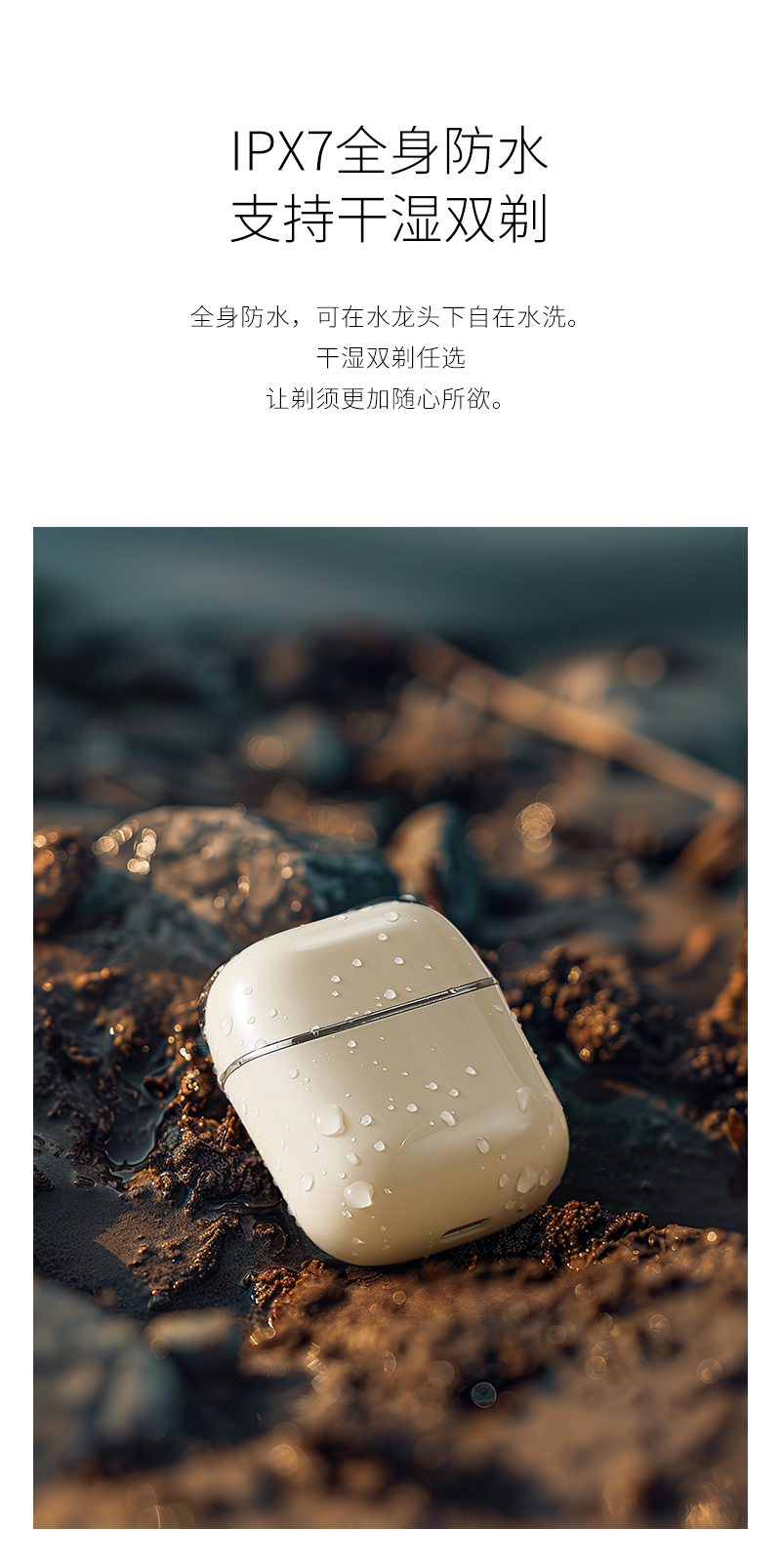 4. IPX7全身防水,干湿双剃,水洗无忧;