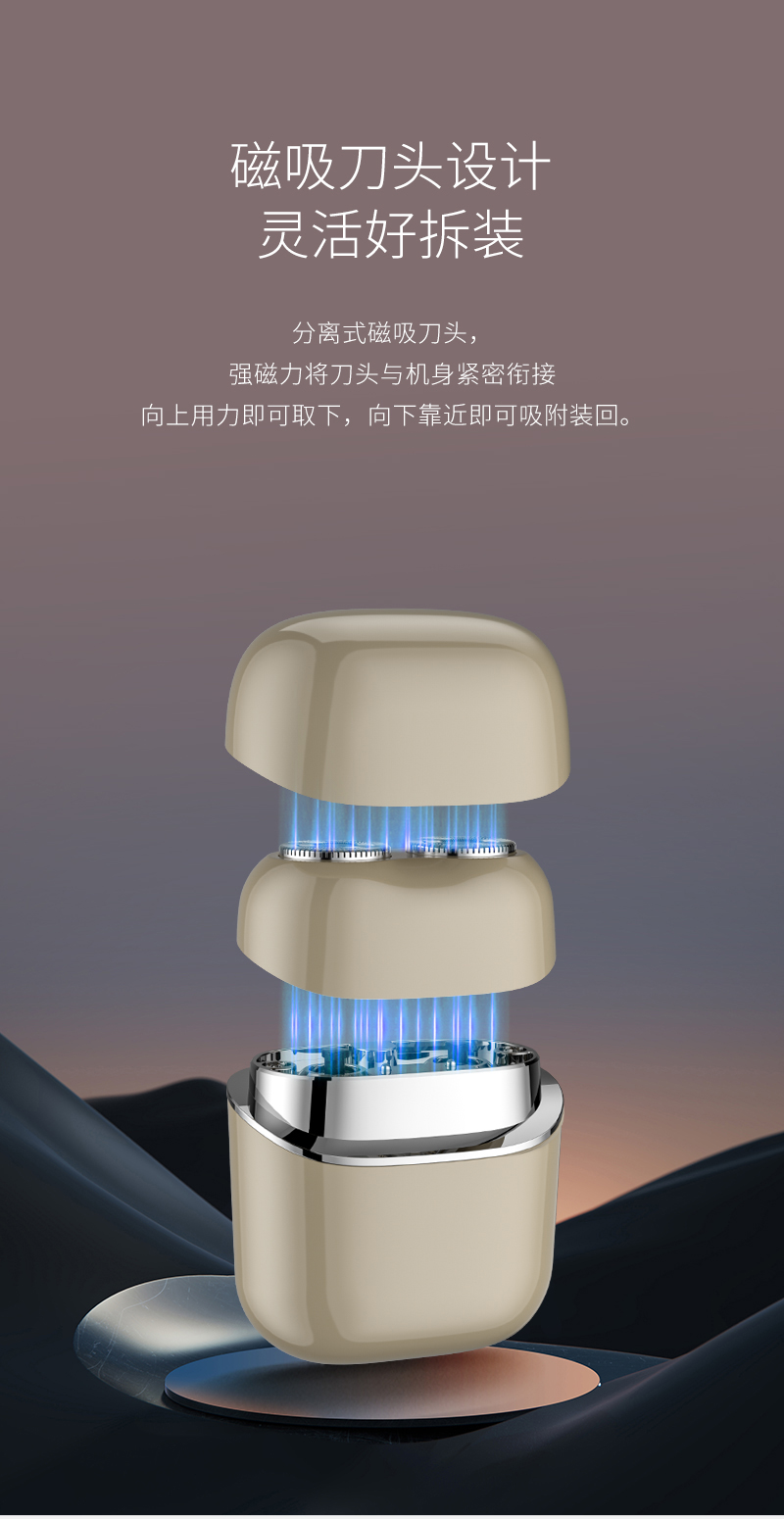 2. 可分离式磁吸刀头,磁吸刀头拆装便捷;
