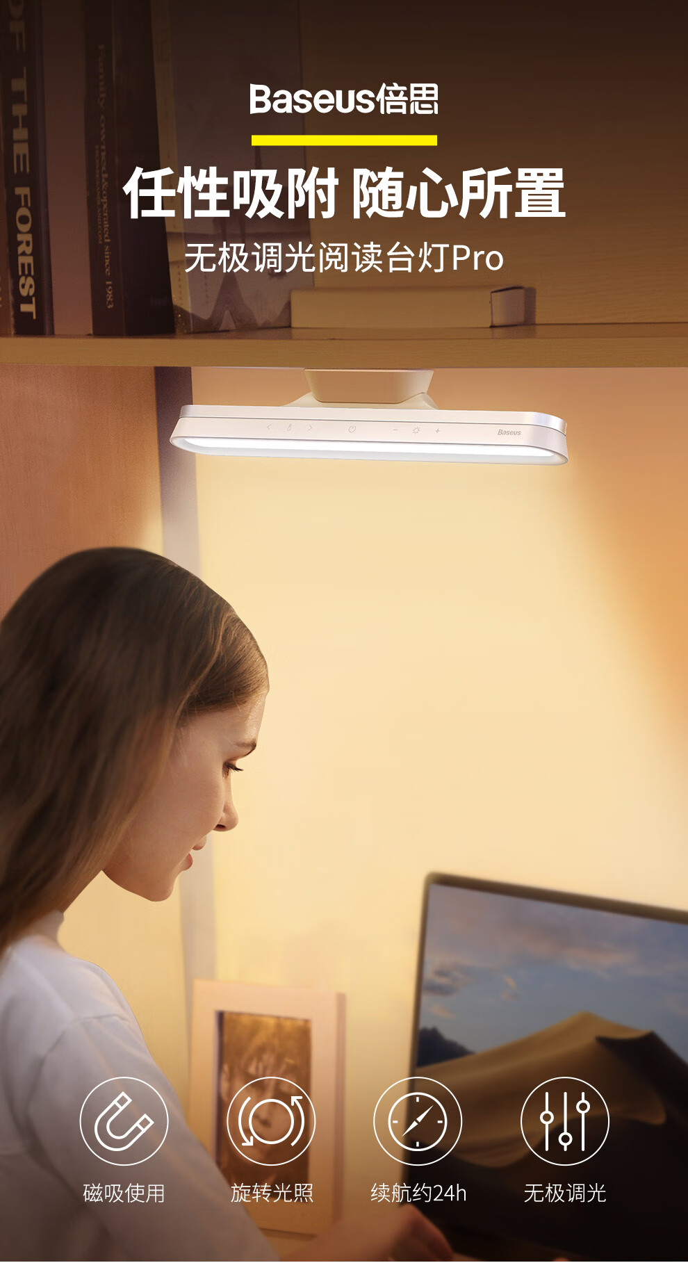 倍思磁吸光色无极调光充电阅读台灯Pro白色