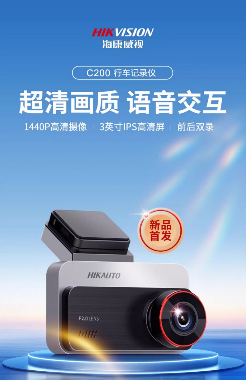海康汽车电子 行车记录仪AE-DC2328-C200(赠送一张64G内存卡) 1080p及以上高清,语音控制,夜视加强,前后双录