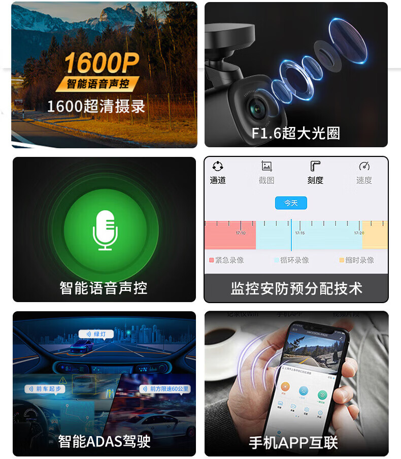 海康汽车电子 行车记录仪F6 PRO 1600P F1.6无光夜视 130°黄金广角 25FPS/30FPS