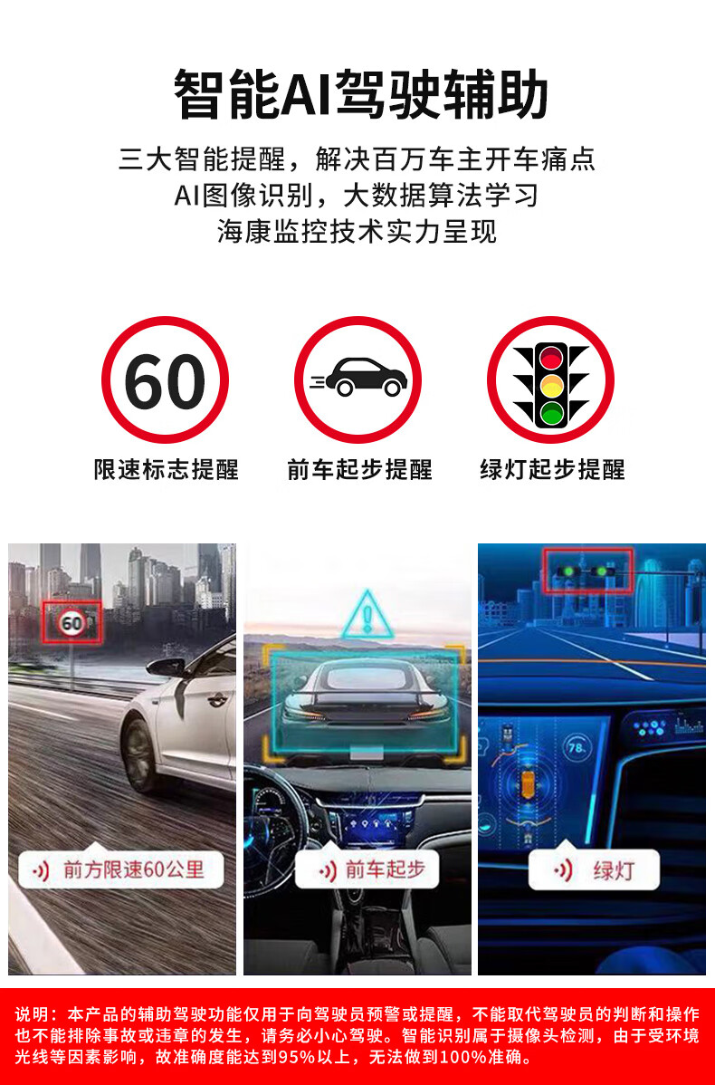 智能提醒(限速提醒、绿灯提醒、前车起步提醒)