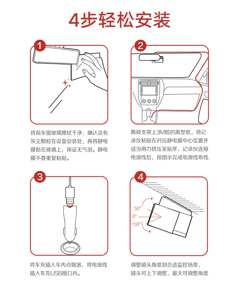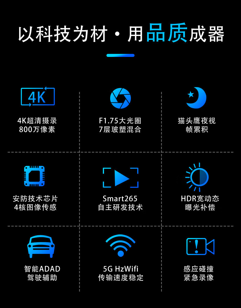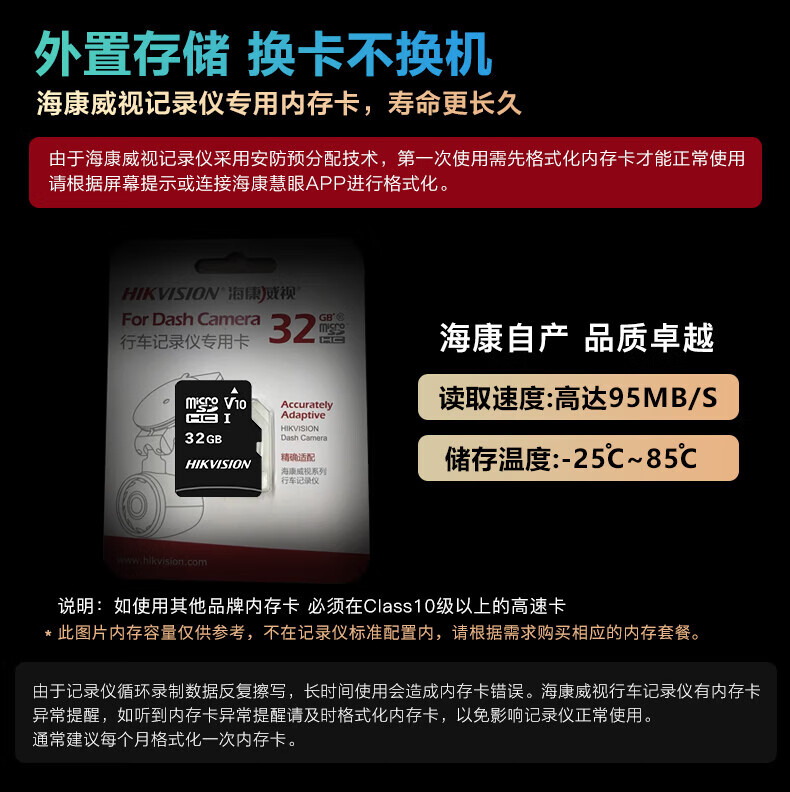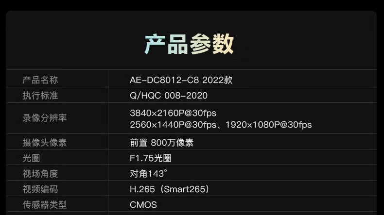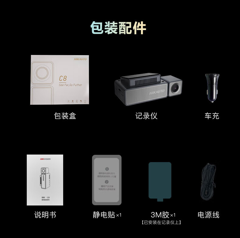 海康汽车电子行车记录仪C8 2160P、F1.75光圈 语音声控