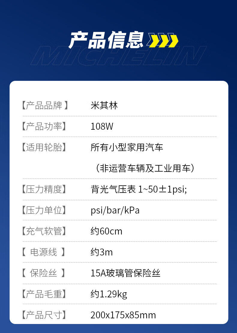 米其林大功率充气泵预设胎压(方形款)12266