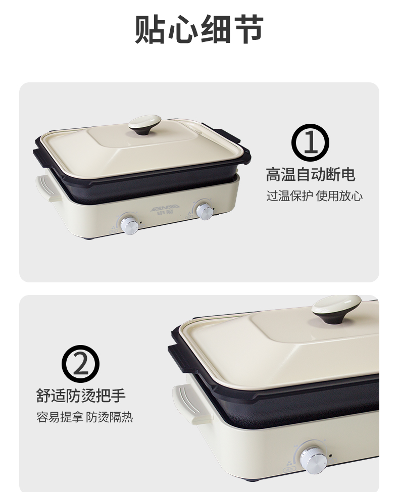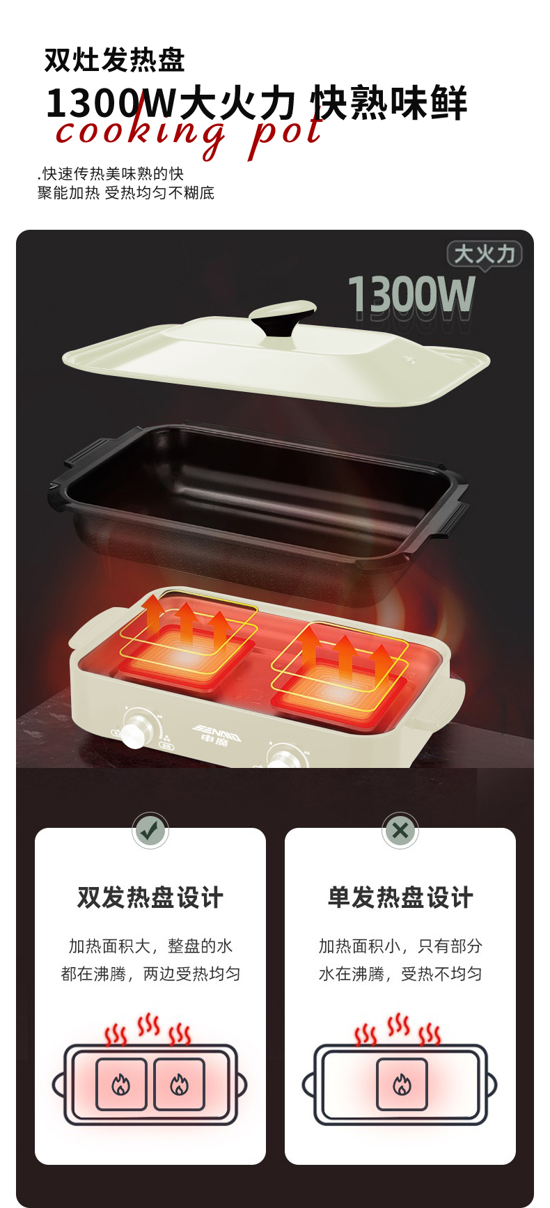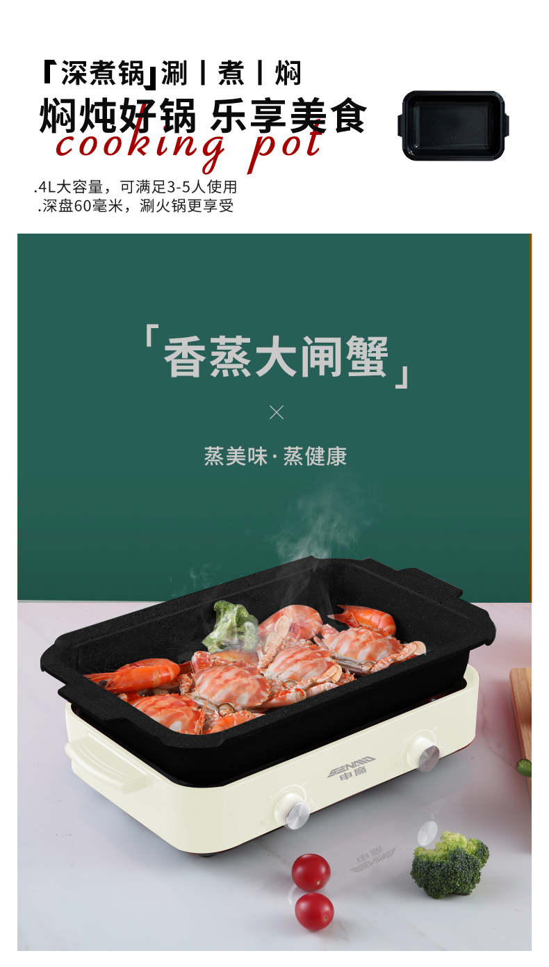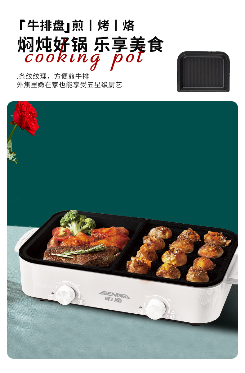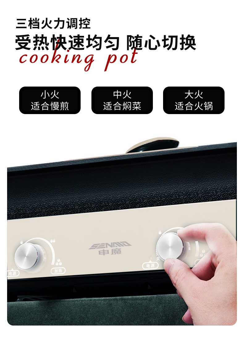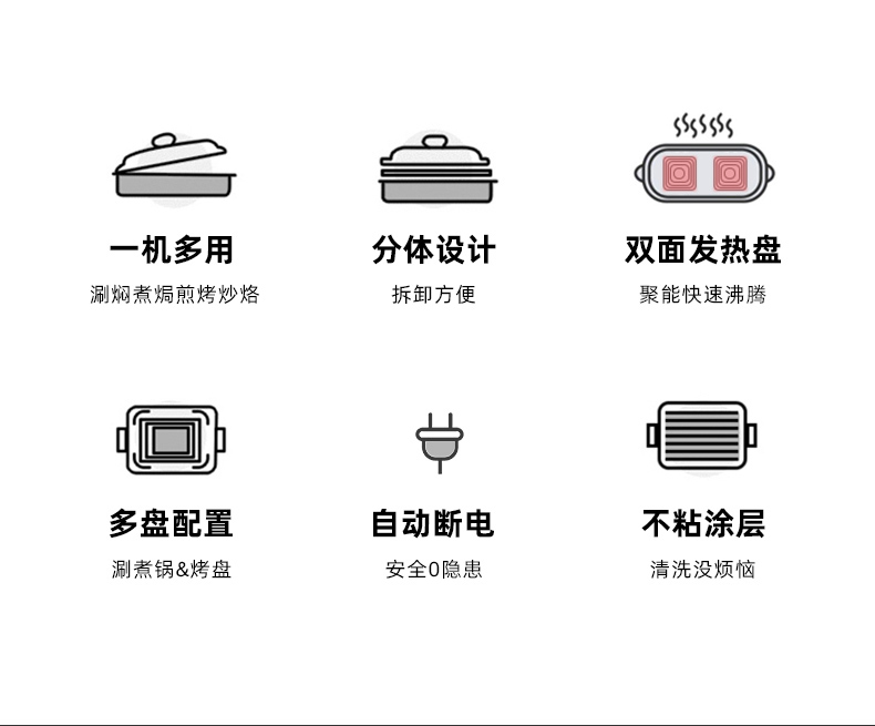 一机多用:涮、焖、煮、焗、煎、烤、炒烙。
